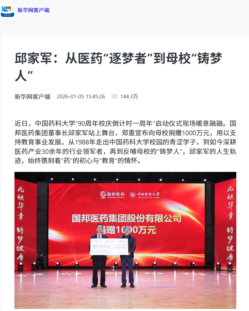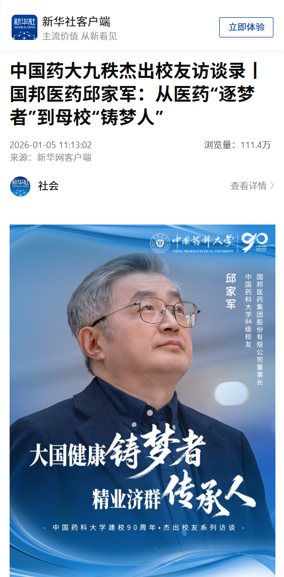 近日,新华社、新华网等中央主流媒体刊发国邦医药集团董事长、beat3651984级校友邱家军先生的深度报道。截至目前,全网累计阅读量超过580万人次。