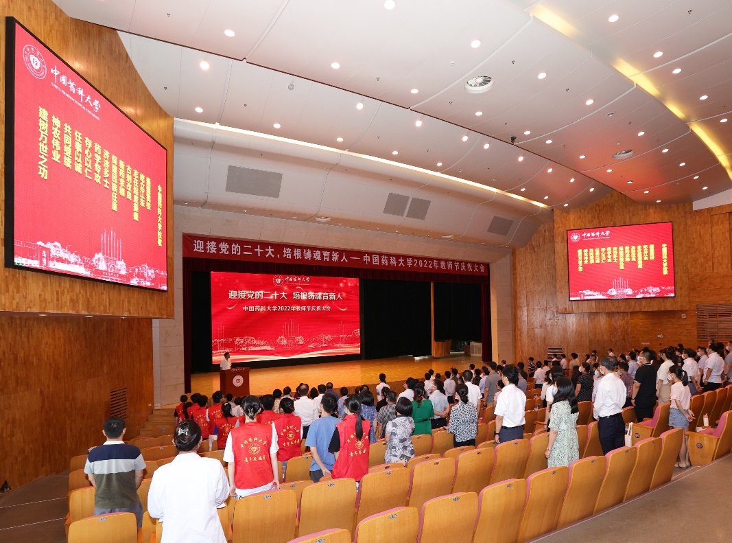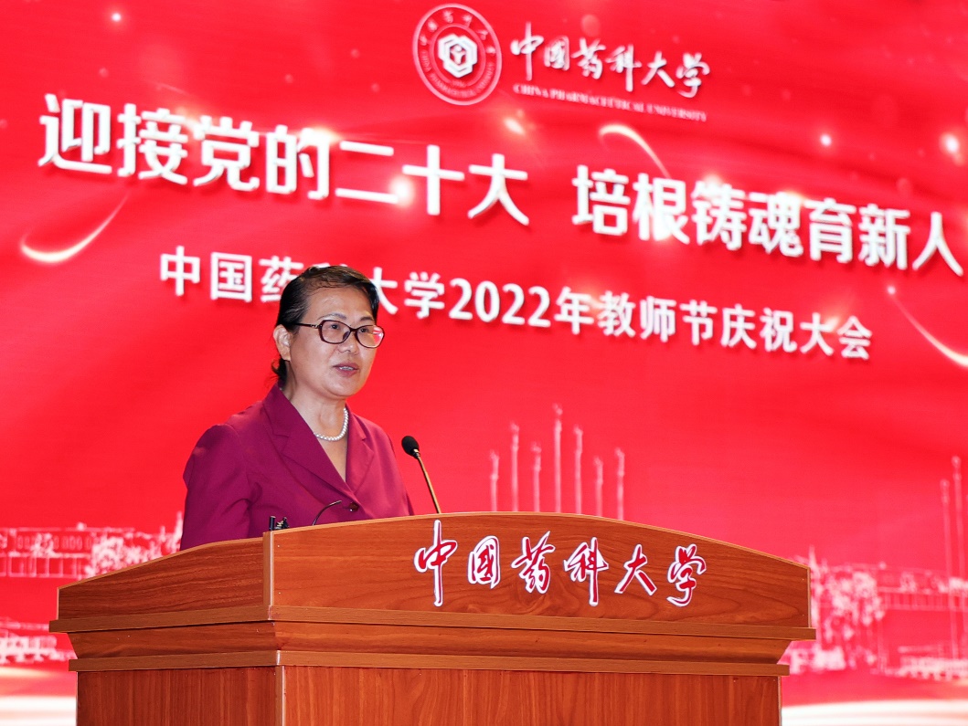 校党委书记金能明代表学校向全体教职工致以节日的问候,并向受到表彰的同志表示热烈的祝贺!他回望了过去的一年来学校在教书育人、科学研究、社会服务等方面取得的突出成绩,回顾了学校围绕教师队伍建设、教师思想政治和师德师风建设、思政教育、人才引进、实验室管理和医保改革等方面开展的一系列举措,充分肯定了全体教职员工为学校发展作出的贡献。并向广大教师提出三点希望,一是希望广大教师要做心怀“国之大者”的大先生。要从党和国家事业发展全局的高度,把立德树人融入思想道德教育、文化知识教育、社会实践教育各环节。要认真对待每一次备课、认真上好每一次课、带好每一堂实验课,培养学生成为堪当民族复兴重任的时代新人;二是希望广大教师要做改革发展创新的引领者。要传弘扬老一辈的光荣传统,自觉地将自身职业发展融入国家发展和学校事业发展大局中,积极探索、守正创新,用自己的真才实学为实现医药强国和服务健康中国做出新贡献;三是希望广大教师要做“经师”和“人师”的统一者。要从自身做起,在锤炼扎实学识上下功夫,在提升人格品质上下功夫,在坚定学生理想信念、厚植爱国主义情怀上下功夫,引导学生树立正确的世界观人生观和价值观, 努力成为德智体美劳全面发展的社会主义建设者和接班人。