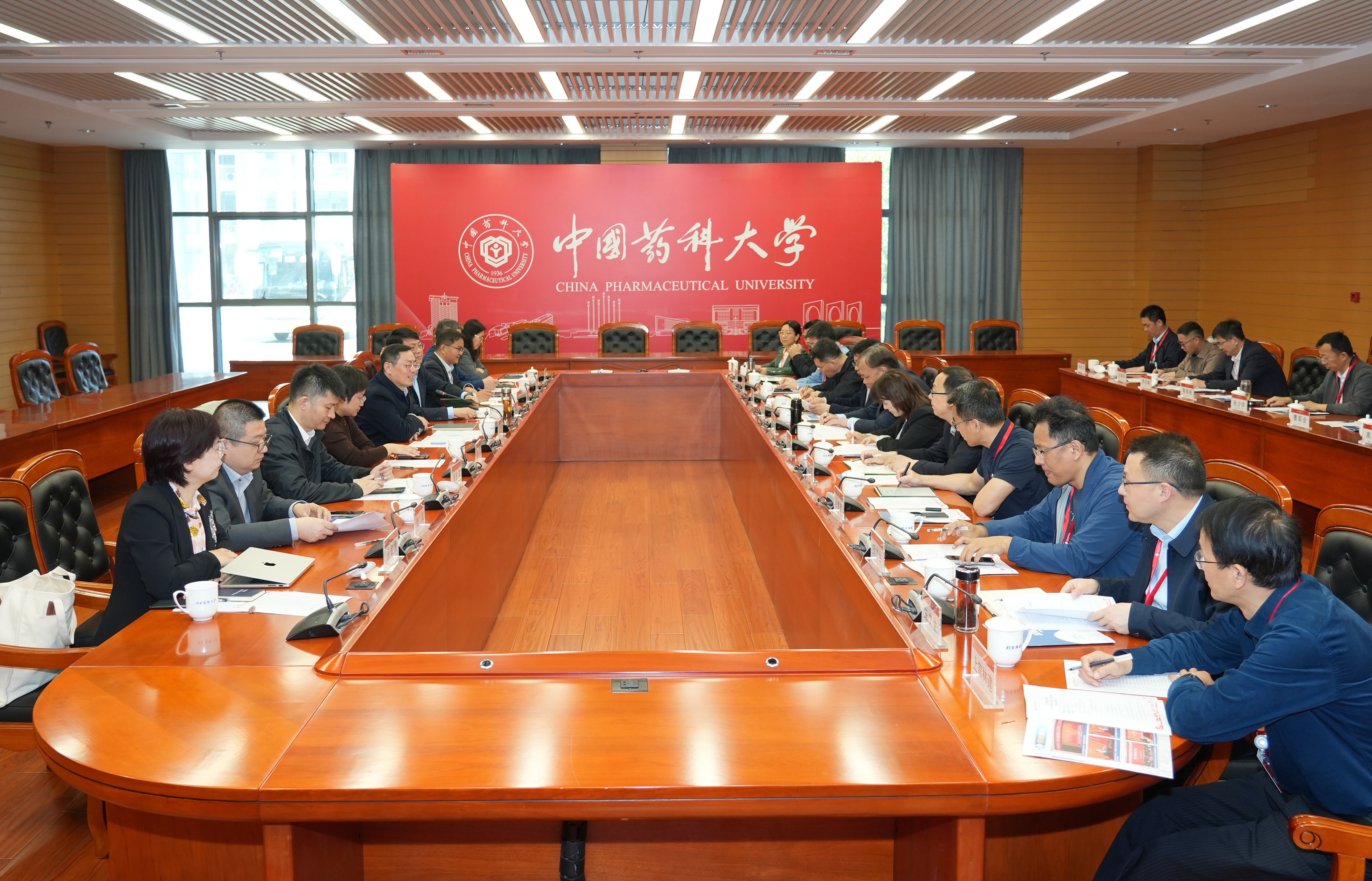 会前,调研团一行实地参观了学校多靶标天然药物全国重点实验室、药用植物园、樱花苑、药学博物馆等地。