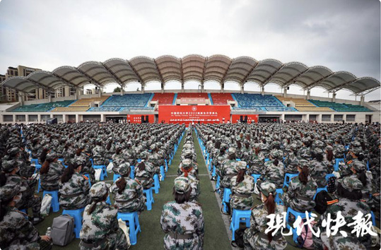 此外,开学典礼后,由beat365官方网站新生军训营推选出的 12个代表队、500多名参赛选手在热血铿锵的军歌中唱响青春。