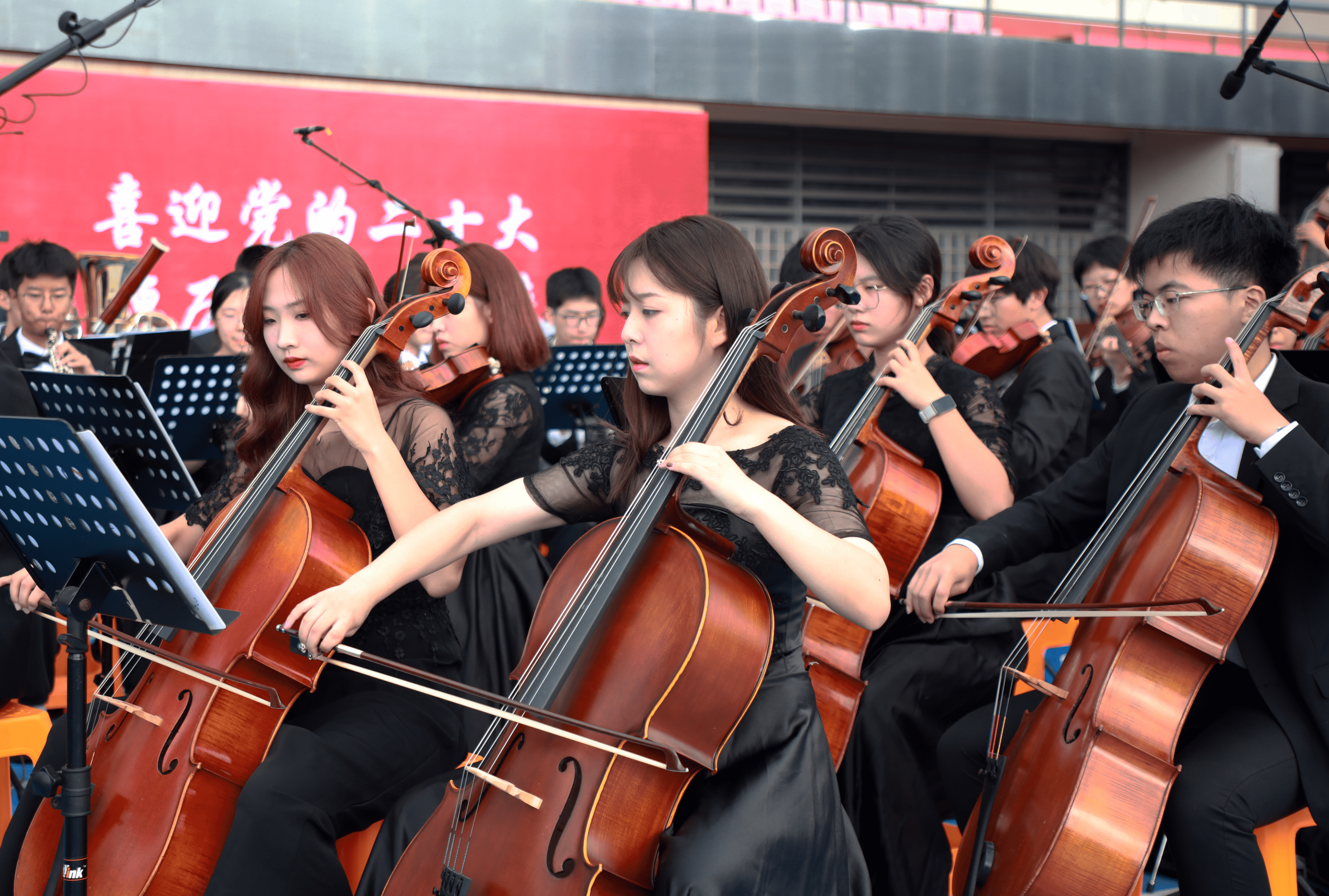 “爱你孤身走暗巷,爱你不跪的模样,爱你对峙过绝望,不肯哭一场”,9月13日上午,典礼正式开始前,全体新生在该校交响乐团的演奏下,集体聆听了时下最热门、最励志的《孤勇者》。恢弘大气的交响乐、激昂奋进的流行曲、振聋发聩的大合唱,点燃了全体学生的热情,不但激发了新生们昂扬向上的情感共鸣,也提升了开学典礼的仪式感和荣耀感。