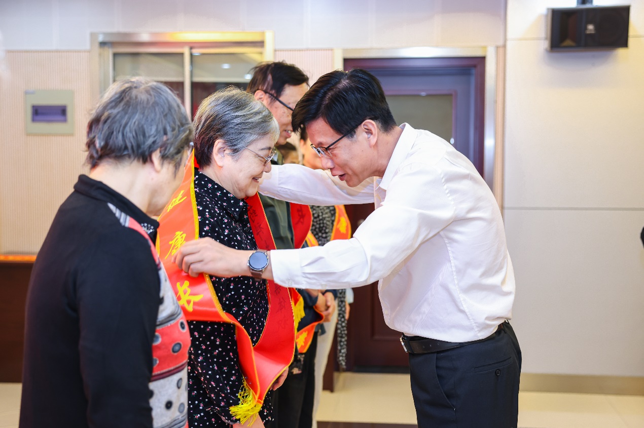 校党委副书记、副校长王正华为寿星佩戴绶带