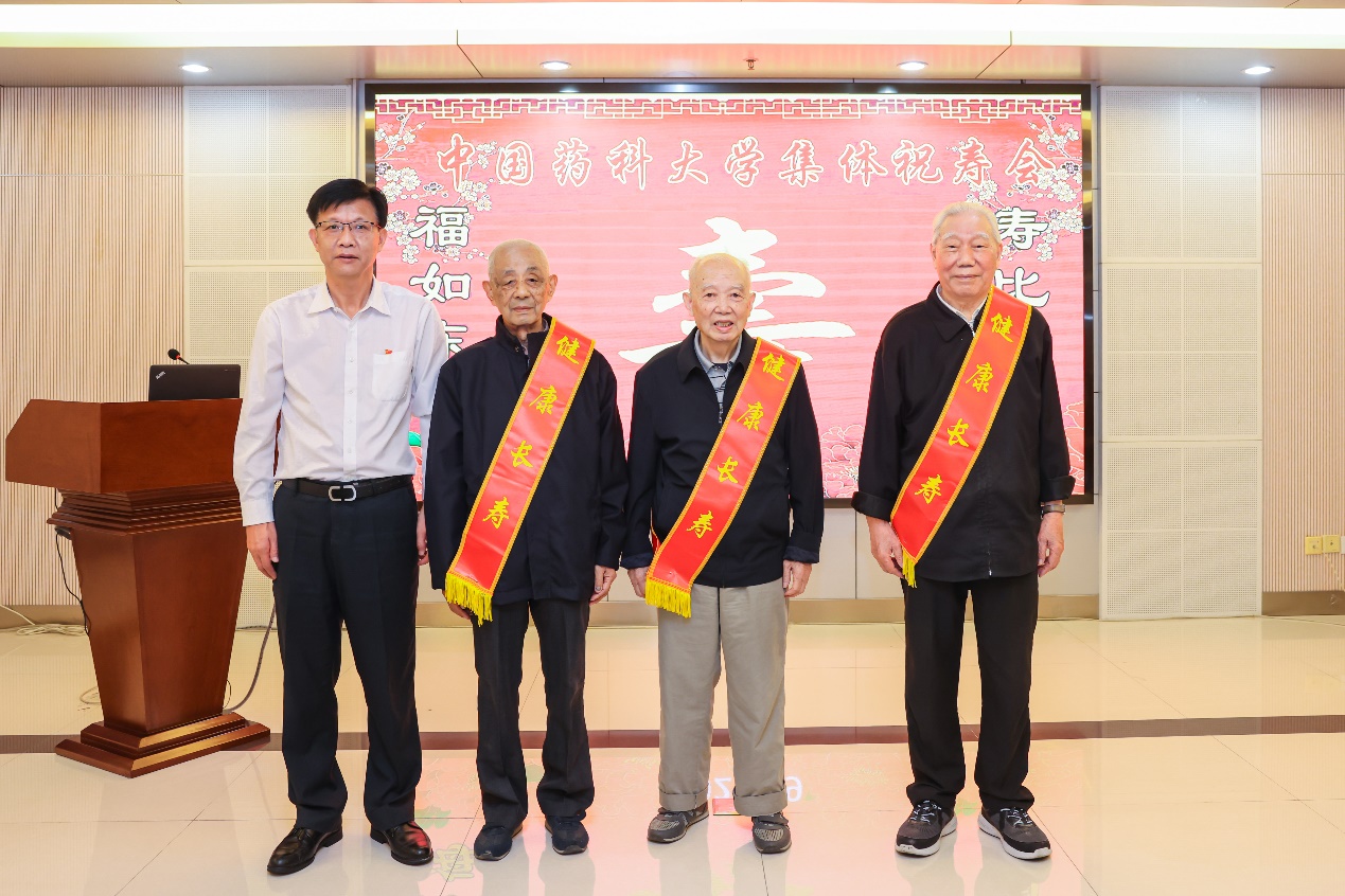校党委副书记、副校长王正华与90岁寿星合影