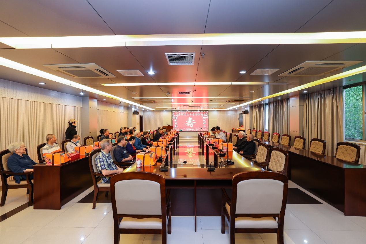 会后,全体寿星与到会领导、参会人员集体合影。对于不方便出行而未能到场的寿星,离退休工作处工作人员分组将蛋糕和绶带送上门,致以生日和节日的祝福。