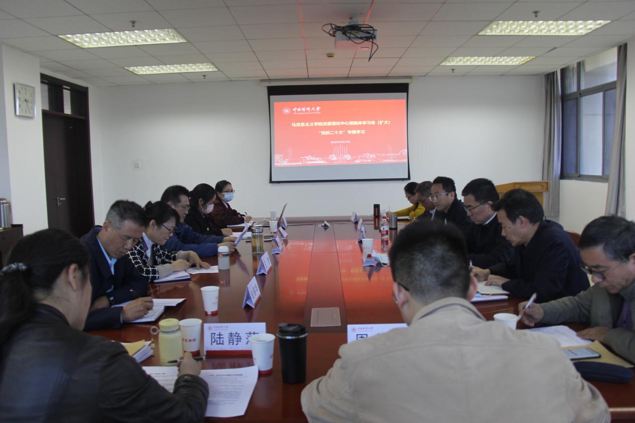 10月19日下午,马克思主义学院召开党委理论中心组学习(扩大)会议,集体研读习近平总书记在中国共产党第二十次全国代表大会上所作的重要报告。校党委书记金能明出席本次会议。院党委书记、院长王儒年主持会议,院党委委员、党支部书记、教研室主任参加学习。
