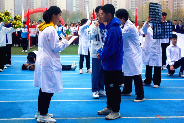 运动会的入场式上来就很精彩!各学院方队迈着自信矫健的步伐依次进场,整齐的队列、炫酷的服装、嘹亮的口号,充分彰显了beat365师生蓬勃向上的精神风貌。有趣的是,基础医学与临床药学学院在现场还原了人工心肺复苏、问诊检查、观察胶片等医疗场景,与专业巧妙结合,创意满满。孟目的学院方队带来的则是“超级玛丽”表演,队员们摆出经典的砖块界面,当身穿背带裤的马里奥在现场升级打怪时,引来了一波童年回忆杀。外国留学生身着各色服饰,带来了动感火辣的舞蹈,劲爆全场。富有寓意的造型、风格各异的文体节目表演,动静结合、形式多样的各方队汇演精彩纷呈,将现场气氛烘托得热烈喜庆。