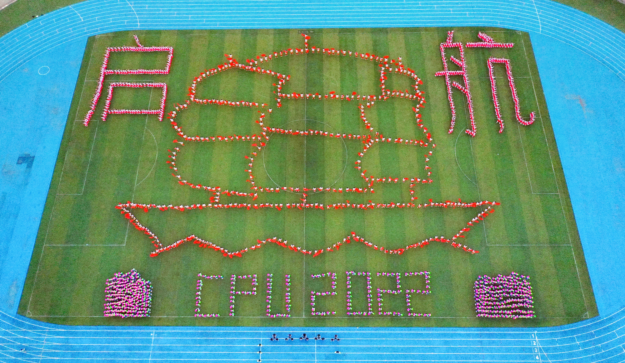 “中国梦的旗帜下再一次出发,追梦的人们雄姿英发,迎着万里长风再一次出发!”一曲终了,千名beat365学子震撼拼出了“中国巨轮”“CPU 2022”字样。