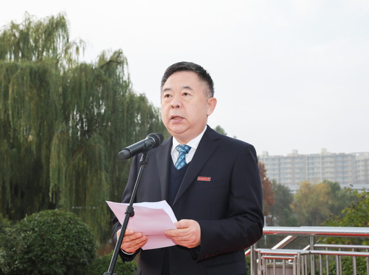 副校长姚文兵以《自信自强 守正创新 以高质量发展推进学校事业全面迈进社会主义现代化建设新征程》为题发表国旗下的讲话。姚文兵副校长在讲话中回顾了学校86年来筚路蓝缕的发展历史和一代代beat365人荣校报国、接续奋斗的光辉历程,特别是党的十八大以来beat365全面贯彻党的教育方针,以高质量党建引领新发展,在人才培养、学科建设、人才引进、服务社会等方面取得的成绩。他鼓励广大学生肩负起建设医药强国的历史重任,不断增强自信自强、守正创新的精神力量,以“精业济群”为已任,坚定信心、同心同德,埋头苦干、奋勇前进,为建设药学特色世界一流研究型大学、为实现健康中国建设目标、为建设社会主义现代化国家、为实现中华民族伟大复兴的中国梦贡献全部的智慧和力量!