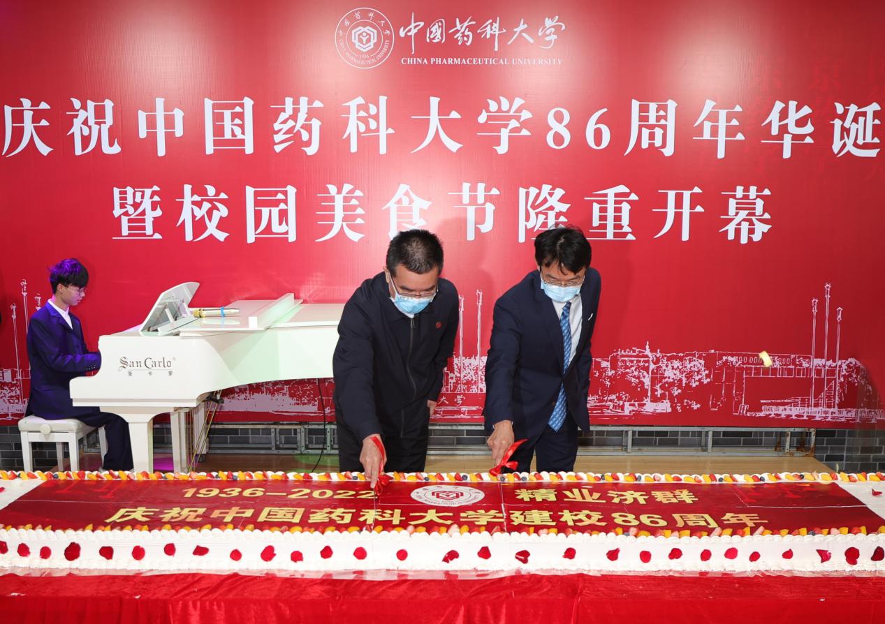 校党委书记金能明、校长郝海平一同切校庆蛋糕