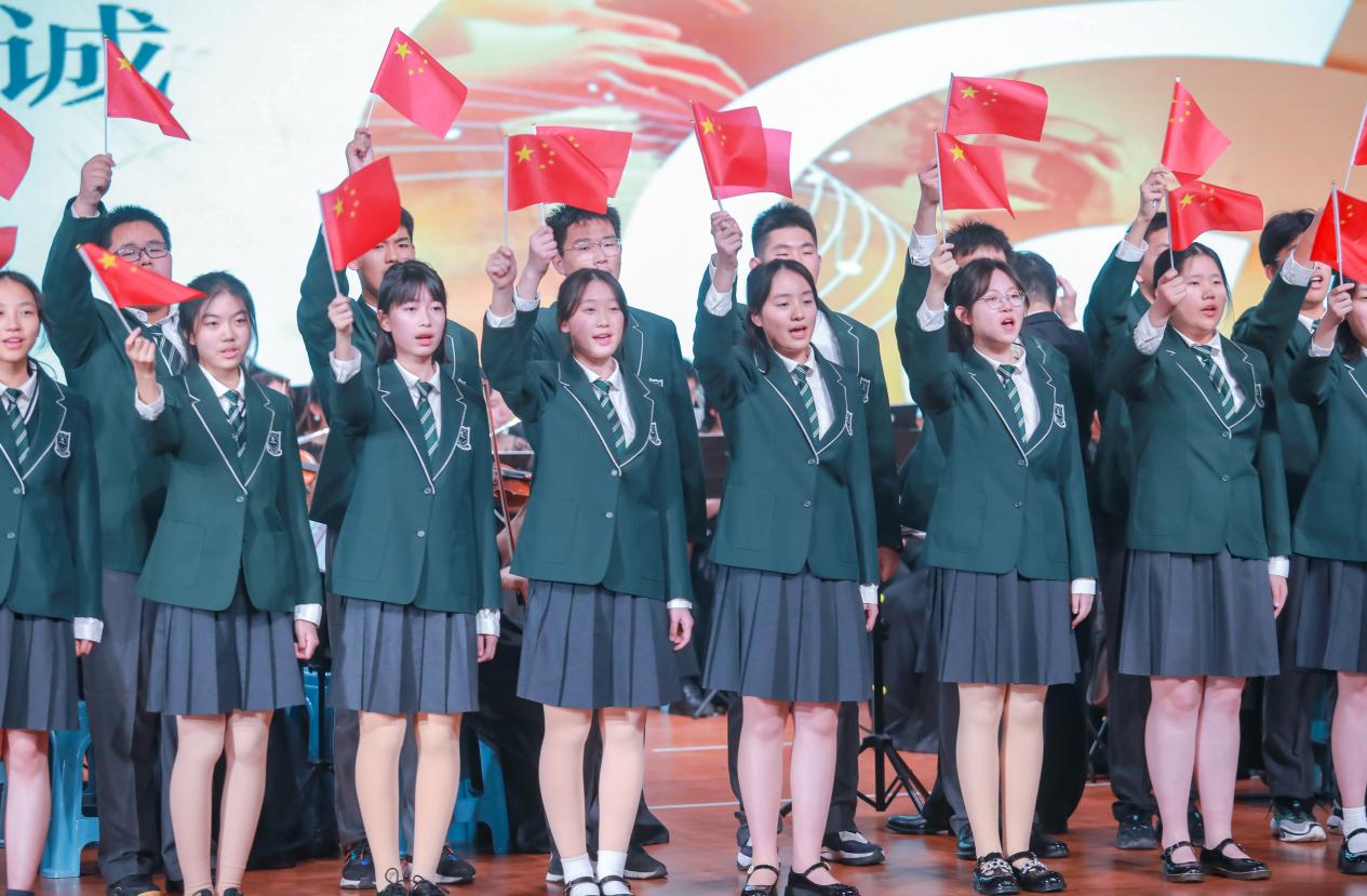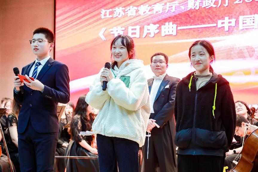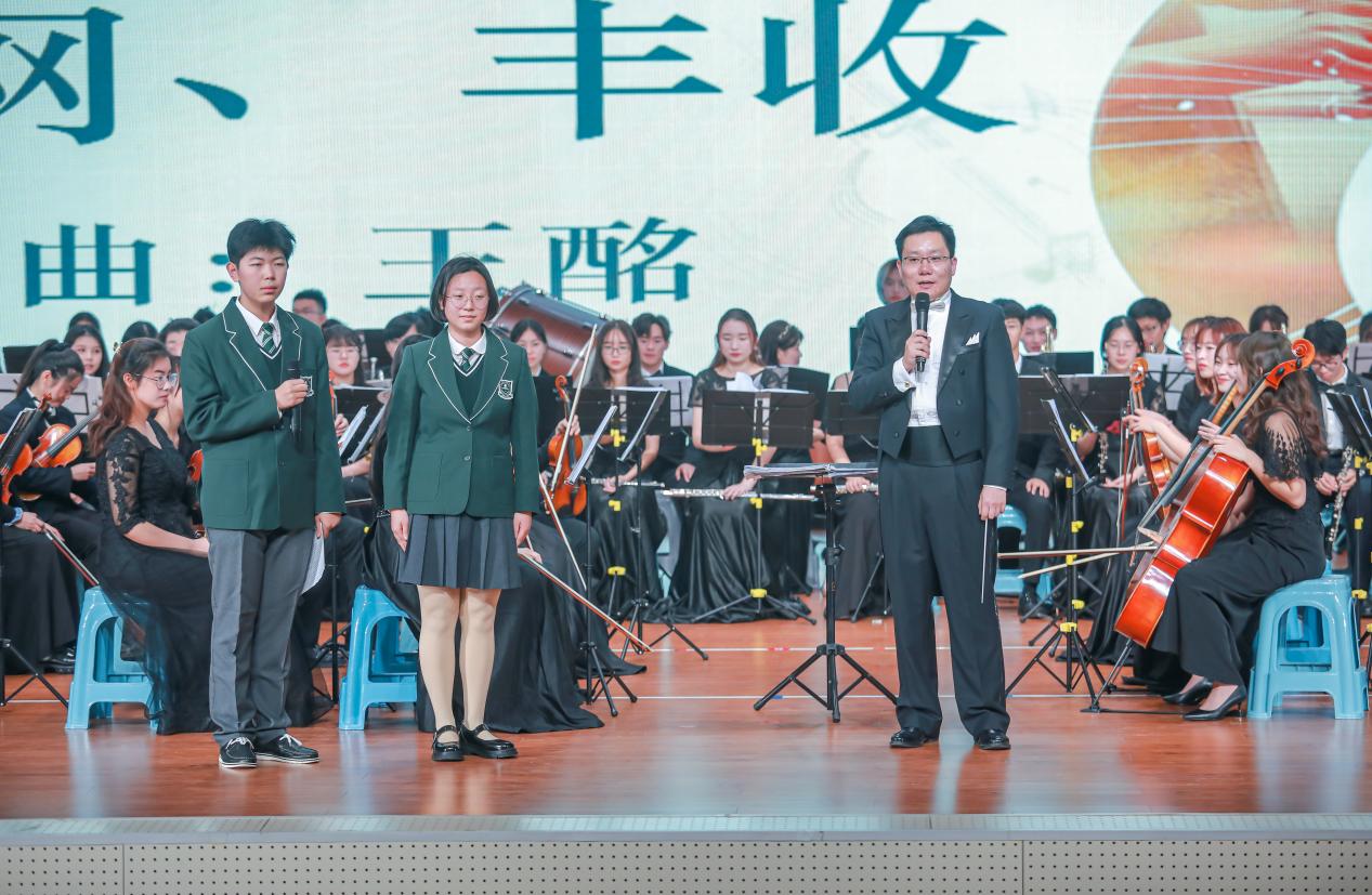 音乐会由beat365文化艺术教育中心严岩副教授指挥,在恢弘嘹亮的《节日序曲》中拉开序幕,作品以鲜明的旋律、辉煌的音色、昂扬的气质、通俗的手法和精湛的技巧,描绘了广大人民群众在广场上欢庆节日的场景。接下来,beat365交响乐团还演奏了展现粤北地区民众欢歌热舞的《瑶族舞曲》;表现海岛渔民喜获丰收后欢快喜庆的气氛的《海霞组曲》;以及展现台湾地区阿美族节日盛况热烈画面的《高山青》。此外,乐团还演奏了以饱满的情感描绘和赞美祖国大好河山的《江山如画》,展现出中华民族灿烂悠久的历史文化和丰富多彩的人文风情。每场音乐会上,乐团指挥严岩副教授给现场观众介绍交响乐队组成和如何欣赏交响乐等知识,促进大家对交响乐的理解与感知。在江宁高级中学演出中,音乐会还邀请今年从江宁高级中学考入beat365的张茹梦(生物技术)、陈瑞芝(生物技术)、高悦(生物制药)三位同学回到母校分享大学学习、生活感受,并鼓励学弟学妹努力学习,珍惜高中学习时光,期待有更多学生考入beat365官方网站,投身医药报国的行业。每场音乐会最后,beat365乐团与南京附中秦淮科高琴韵飞扬合唱团和江宁高级中学承露合唱团为现场师生献上《我和我的祖国》,朗朗的旋律和真挚的歌词,将音乐会推向高潮,全场沉浸在歌声的海洋之中。此次活动还得到学习强国、交汇点新闻、现代快报、央视频、江苏新闻广播、直播南京等国家媒体报道,扩大beat365社会影响,也为本年度高雅艺术进校园活动画上圆满句号。