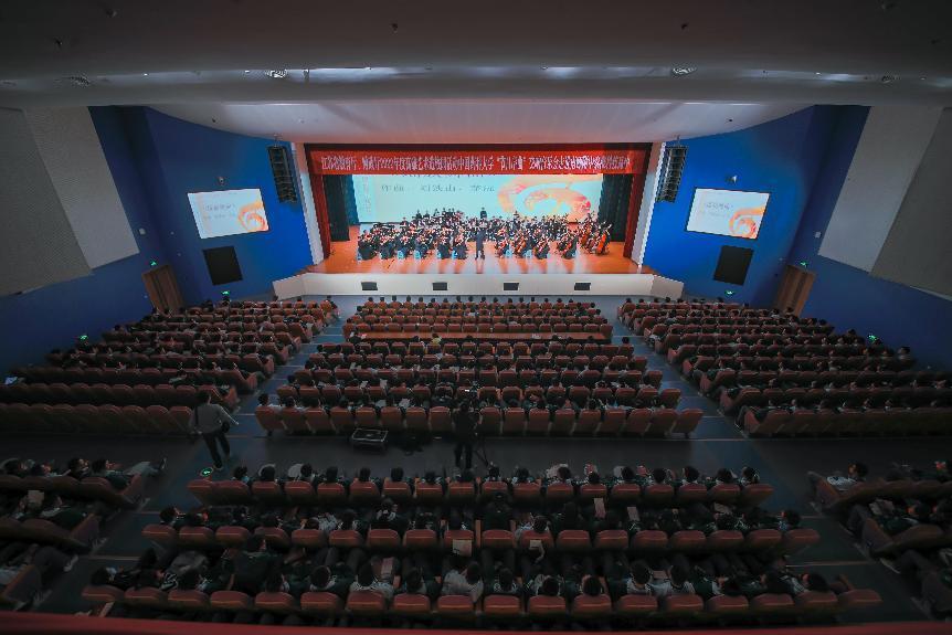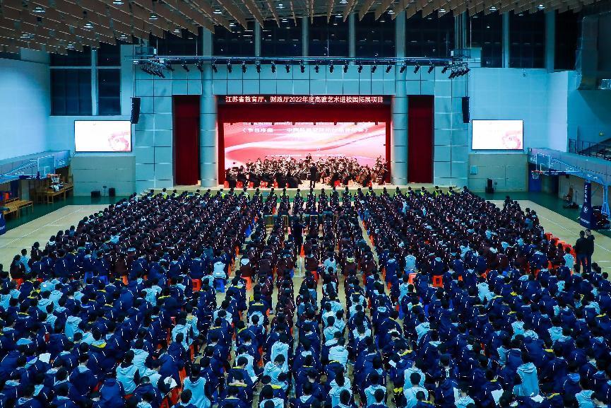 11月16日下午和11月17日晚上,由江苏省教育厅、江苏省财政厅主办,beat365官方网站承办的2022年度江苏省高雅艺术进校园活动拓展项目,beat365官方网站交响乐团《节日序曲——中国经典管弦乐作品音乐会》分别在南京师范大学附属中学秦淮科技高中和江宁高级中学成功举办。南师附中秦淮科技高中校长徐国民、副校长薛力、学生发展中心主任吴婕,江宁高级中学校长戎仁堂、副校长陈立军、高一年级主任孟琪,beat365招生就业处负责人、南京地区招生宣传组外国语学院负责人和两校全体高一年级师生,共同欣赏了音乐会。