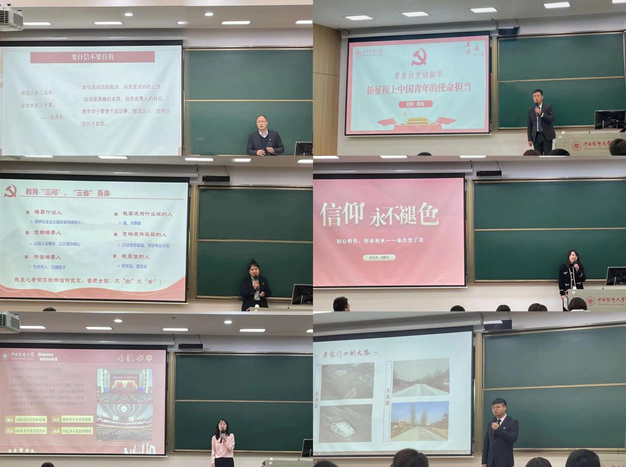 本次宣讲分为“青年”“信仰”“奋斗”三个篇章,来自药学院、生命科学与技术学院、基础医学与临床药学学院的6名宣讲团成员进行了主题宣讲。第一篇章主题为“青年”。药学院学工办主任张驰、药学院辅导员高海分别以《激扬青春梦 奋进正当时》《青春向党铸韶华|新征程上中国青年的使命担当》为题,讲述了青年担当与青年使命,广大青年学子在党的二十大精神指引下奋发有为,展现青春力量。第二篇章主题为“信仰”。基础医学与临床药学学院学工办主任刘瑞环、药学院辅导员刘雅芯分别以《领悟人才培养“三问”,共话青年使命担当》《信仰永不褪色》为题,结合党的二十大报告和自身工作、生活与大家分享,引导广大青年学子进一步深化理想认识,牢固树立马克思主义信仰。第三篇章主题为“奋斗”。生命科学与技术学院辅导员郭彬彬、药学院辅导员黄鑫分别以《强国蓝图既成,奋发时不我待》《路》为题,畅谈在党的领导下,我国取得的巨大历史成就。进一步激发大家为人类的健康与发展而努力奋斗的青春热情,鼓励大家用实际行动向祖国交出最好成绩单!