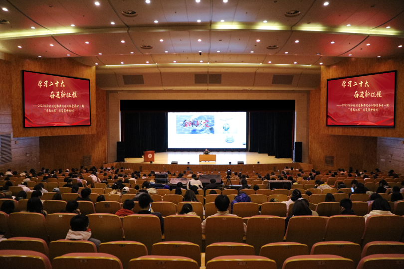 校党委宣讲团成员、校党委常委、宣传部部长陈卫忠以《贯彻党的二十大精神 维护高校意识形态安全》为题作专题报告。他从当前意识形态风险的严峻性与复杂性、高校意识形态建设的重要性与紧迫性以及提升意识形态工作的斗争意识和斗争本领三个维度,引导广大学生们要提高政治站位、牢固树立“四个意识”、坚定“四个自信”,敢于斗争、善于斗争,真正做到言之有据、言之有力、言之有为,运用网络阵地传播正能量,自觉守牢把好高校意识形态阵地。