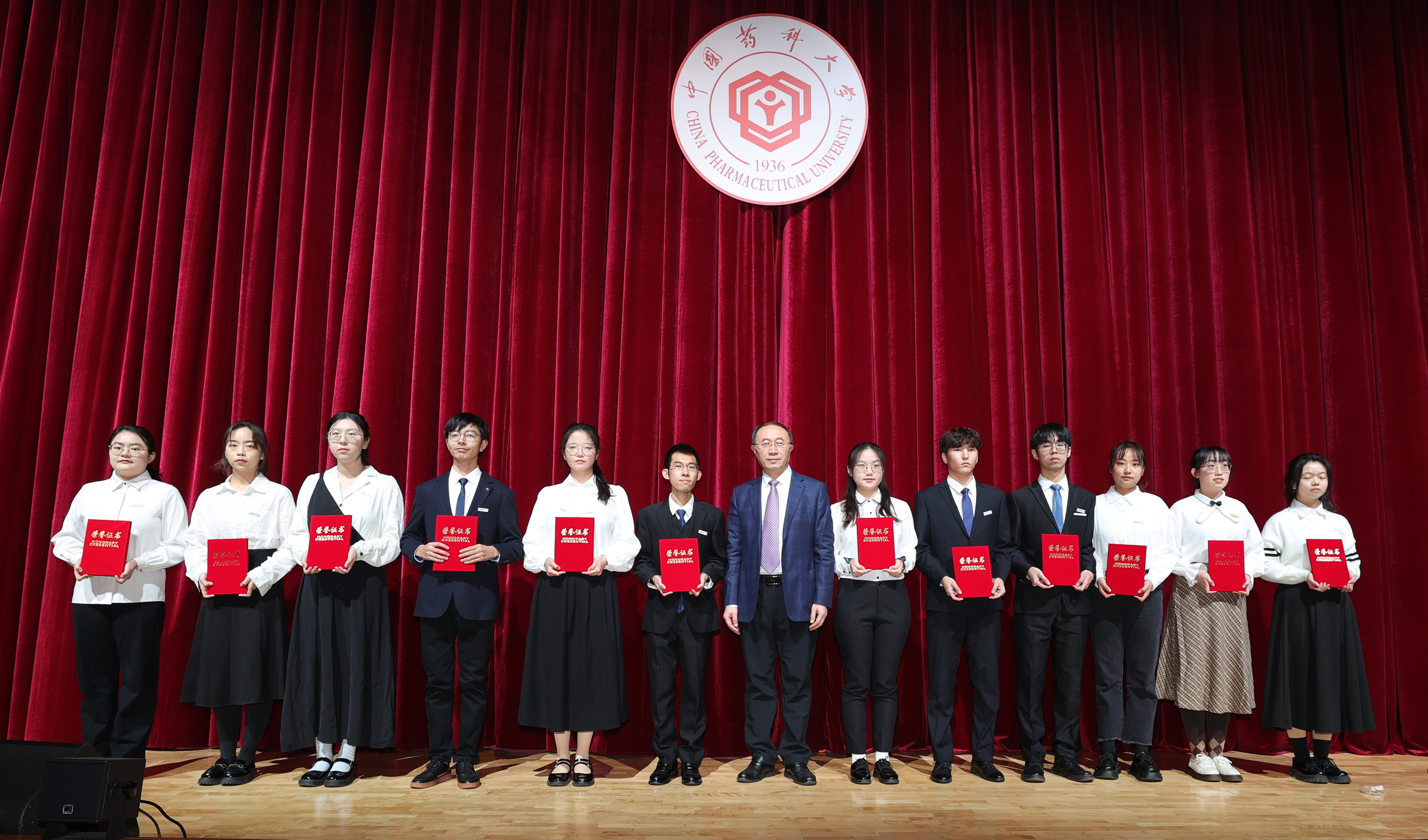 校长郝海平为12位“校长奖学金”获得者分别颁奖