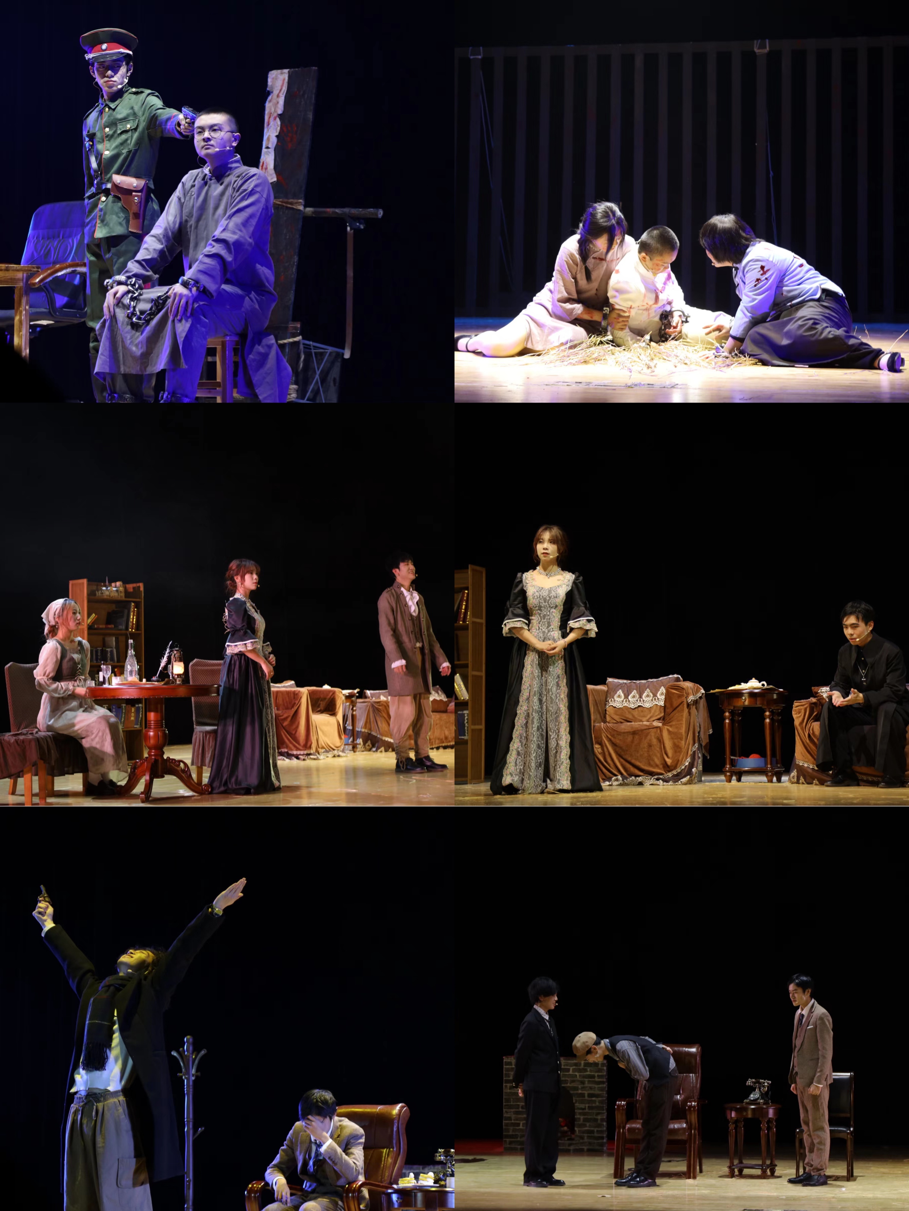 本次话剧专场展演了《雨花台》《群鬼》《魔椅》三部剧目。其中,《雨花台》展现了革命先辈们的忠诚担当和不屈不挠的斗争精神。《群鬼》讽刺了作者易卜生所处年代中的种种落后社会现象和道德卑劣之人。《魔椅》则是以荒诞幽默的形式展现了人性复杂多样的一面。现场台上表演精彩纷呈,台下观众聚精会神。
