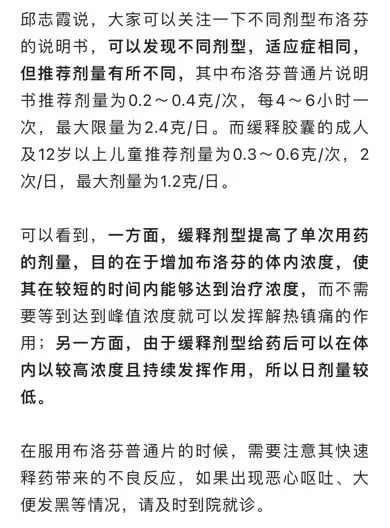 “只要没有布洛芬的用药禁忌,大家可以根据自己的实际情况进行药物选择,不需要特别纠结剂型问题,如果还不放心,可以咨询医生或药师后再做选择。”邱志霞表示。