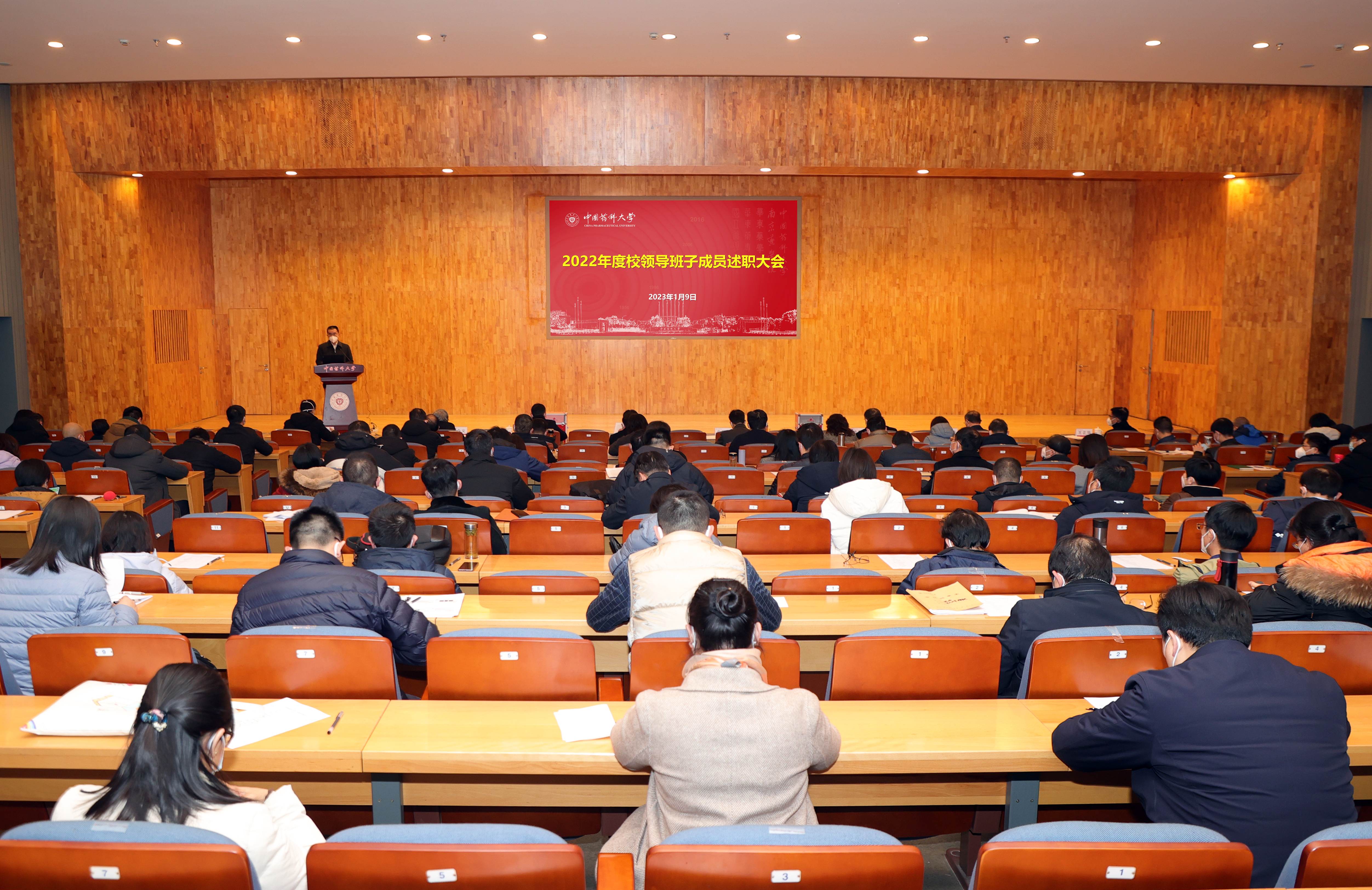 校党委书记金能明主持会议,并安排部署了2022年度民主生活会、走访慰问老同志、寒假疫情防控等岁末年初重点工作。校长郝海平代表校领导班子进行述职,对学校2022年度工作进行了全面总结。各位校领导分别作个人述职述廉报告。