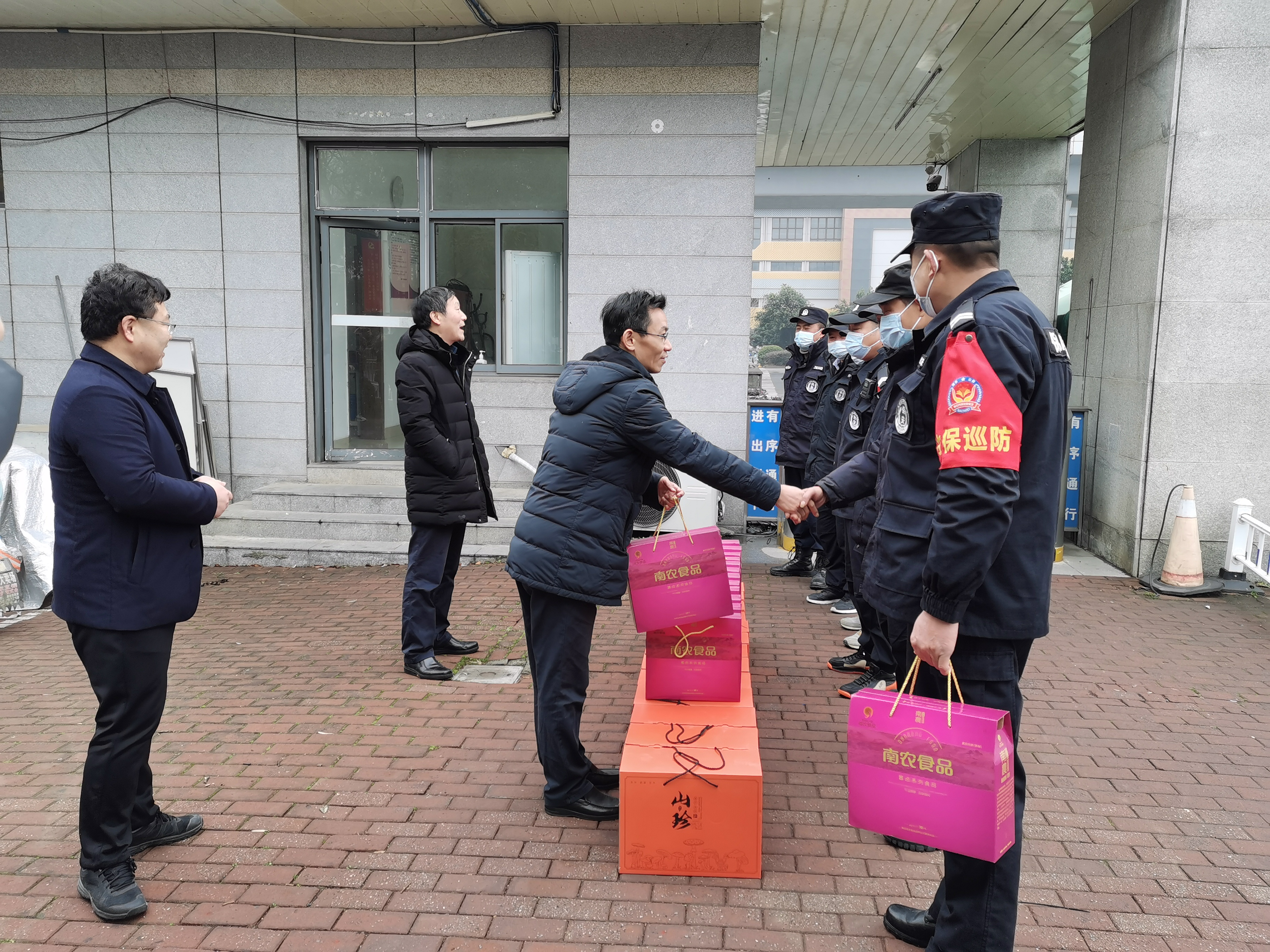 随后,校长郝海平、副校长袁浩带领保卫、后勤等部门负责人前往江宁校区大门门岗、江宁校区一食堂、工程维修组、H组团、A组团等场所看望了春节期间坚守工作岗位的保卫后勤职工,为他们送上新春的祝福和节日慰问礼包。