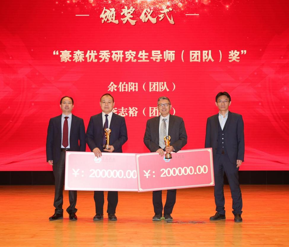 2022年,中药学院余伯阳教授团队和药学院李志裕教授团队获评第三届“豪森优秀研究生导师(团队)”奖。颁奖典礼上,校长郝海平、江苏豪森药业集团有限公司总裁吕爱锋共同为获奖导师颁奖。余伯阳教授作为获奖导师代表介绍了研究生培养经验。