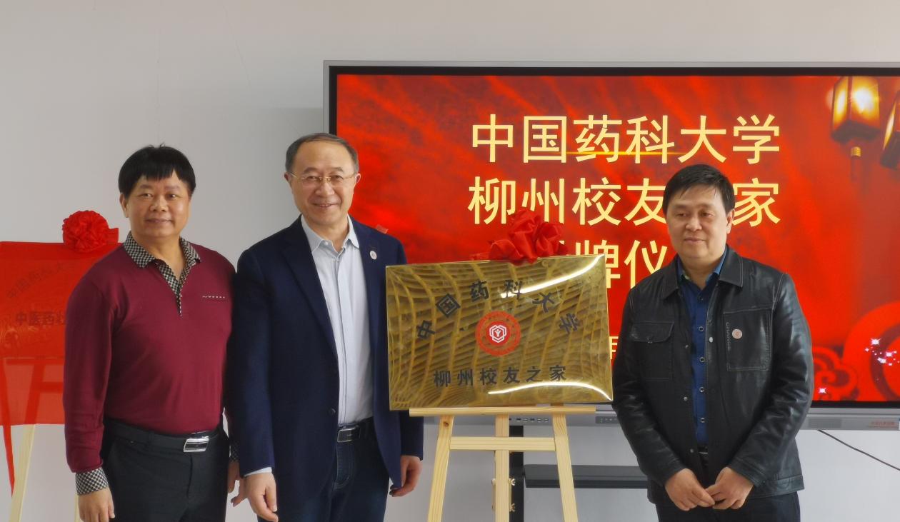 副校长陆涛、广西校友会会长唐弟光、柳州校友会会长黄义昆共同为柳州校友会揭牌