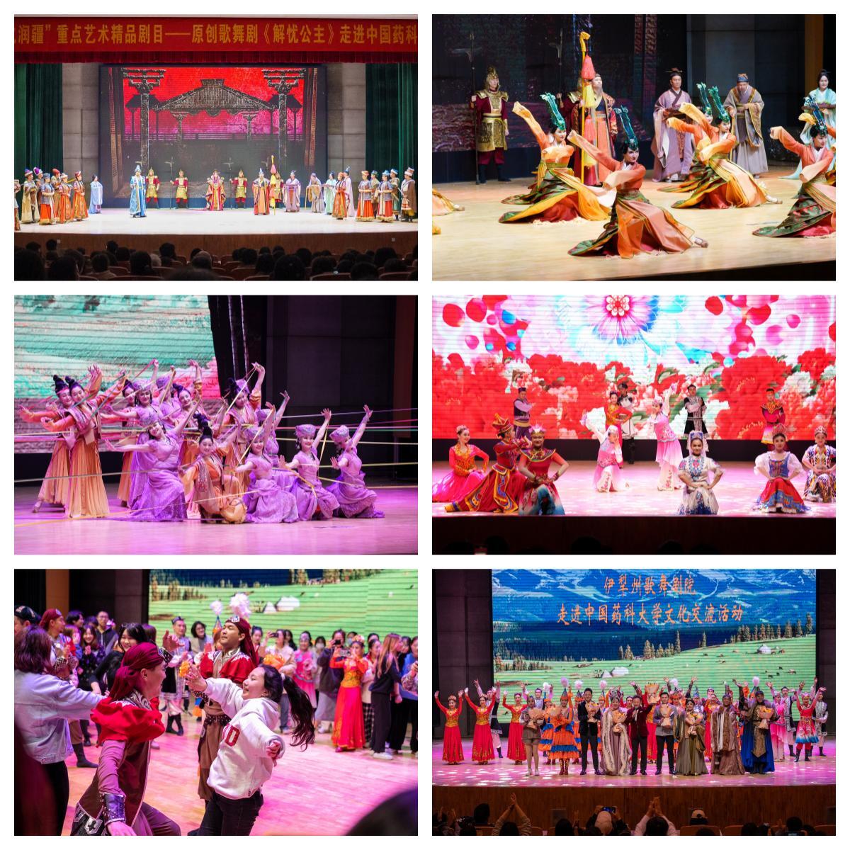 歌舞剧《解忧公主》以细君、解忧两位汉家公主与乌孙国王和亲的历史事实为依据,讲述了解忧公主在乌孙国50多年间,为传播汉家文化、促进西域和中原友好往来、稳定边疆形势作出的巨大贡献。剧中展现的历史是新疆各民族和谐相处、中华民族多元一体格局形成的溯源之一。该剧以解忧公主内心的挣扎、成长、转变作为叙事的推动力,将个人人生选择与家国利益紧密联系起来,生动塑造了坚韧果敢、富有家国情怀的伟大形象。谢幕之际,伊犁州歌舞团邀请师生们上台进行互动,沉浸式地感受民族歌舞剧的魅力。