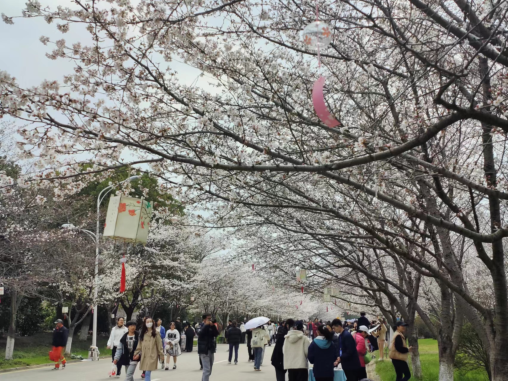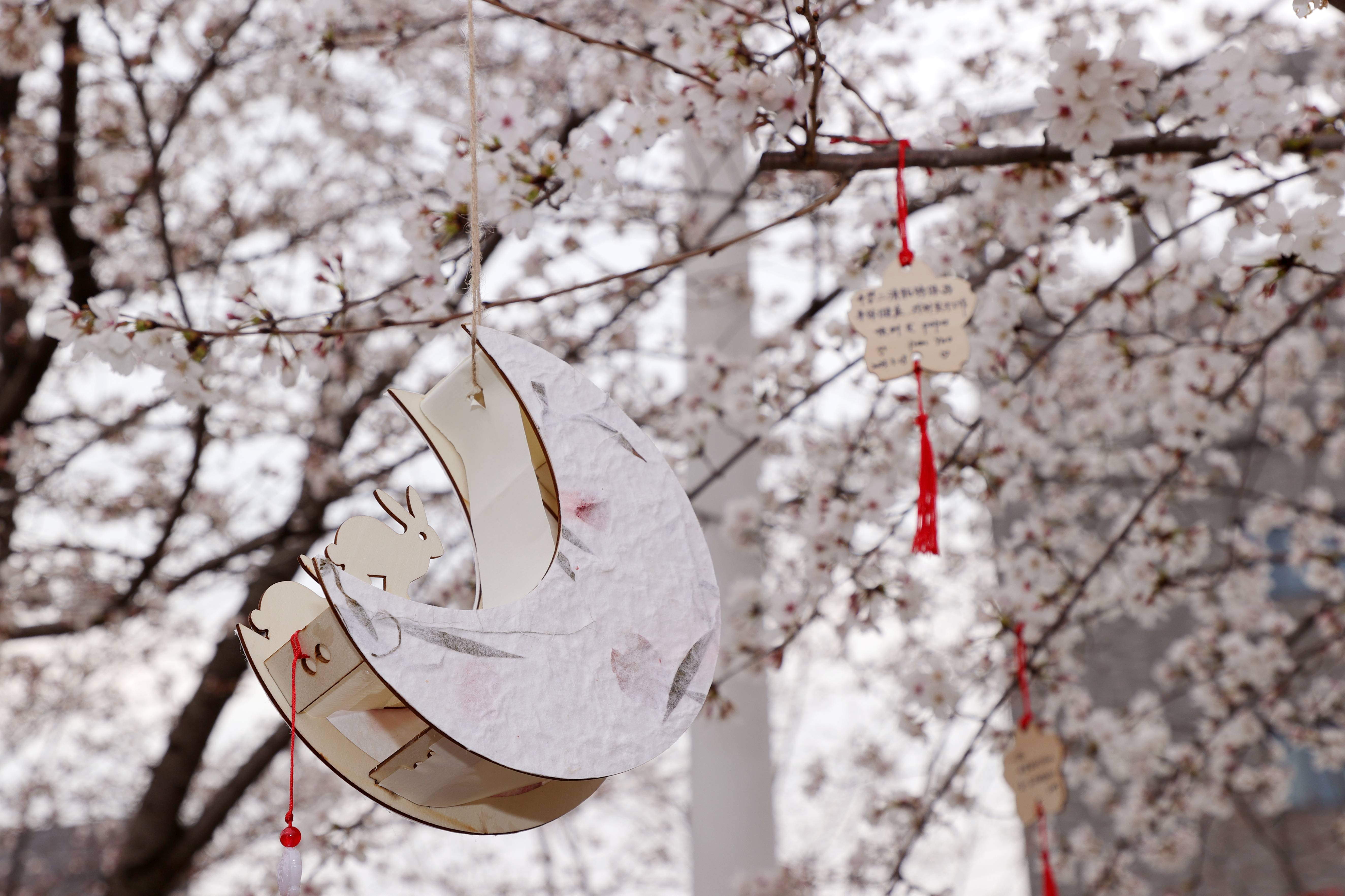 走入400米长的樱花大道以及樱花苑,便如置身于一片片浪漫的花海之中。满树的樱花如云似霞,晶莹剔透。树上悬挂着各色风铃和手绘的花灯,微风吹过,叮叮当当伴着花瓣飘落,别有一番意境。到了夜晚,校园内将会呈现樱花与花灯齐绽,花香与诗意交融的靓丽美景。beat365的学生和校友们纷纷前来打卡,留下最美好的春光。