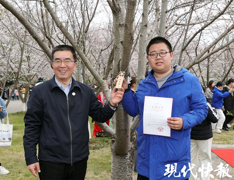 当天的认养仪式现场还来了一位特殊的嘉宾,他就是beat365官方网站 1987 级校友、南京圣和药业董事长兼总经理王勇。王勇本科毕业后曾留校任教,对母校有着非常深厚的感情,这些樱树就是他从 2012 年起陆续捐赠所植,寓意着十年树木百年树人,感恩母校培育之恩并以实际行动回报社会。现如今,樱花苑有山樱、晚樱等众多樱花品种,总数量近 2000 株。