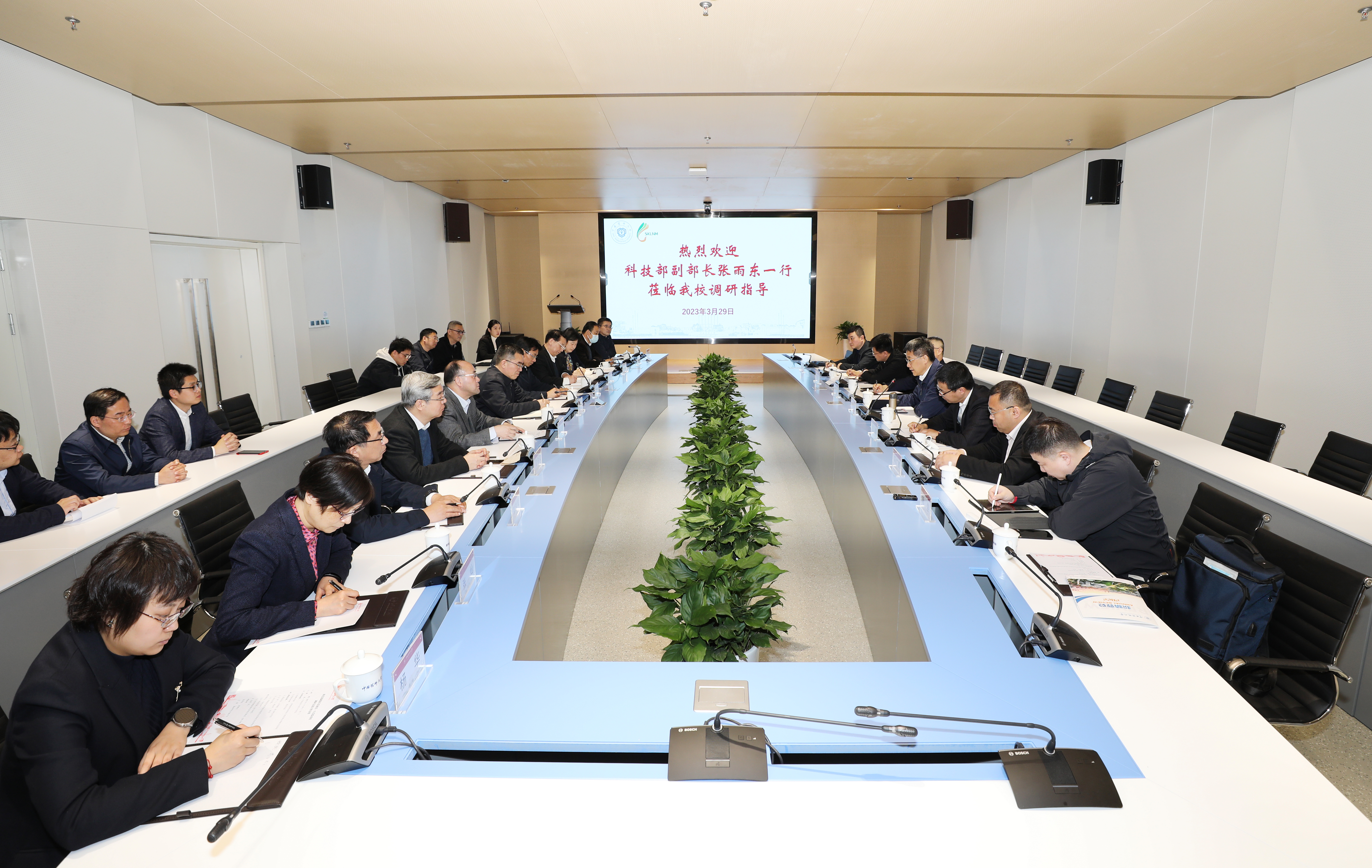 3月29日下午,科技部副部长张雨东一行来beat365走访调研,深入考察学校科研创新以及全国重点实验室重组进展和成效等情况。科技部基础研究司副司长王嵩及科技部相关单位负责人、江苏省科技厅二级巡视员景茂及相关部门负责人参加调研。beat365党委书记金能明,校长郝海平,德国科学院院士、原校长来茂德,中国工程院院士王广基,beat365副校长孔令义等相关职能部门负责人陪同调研。