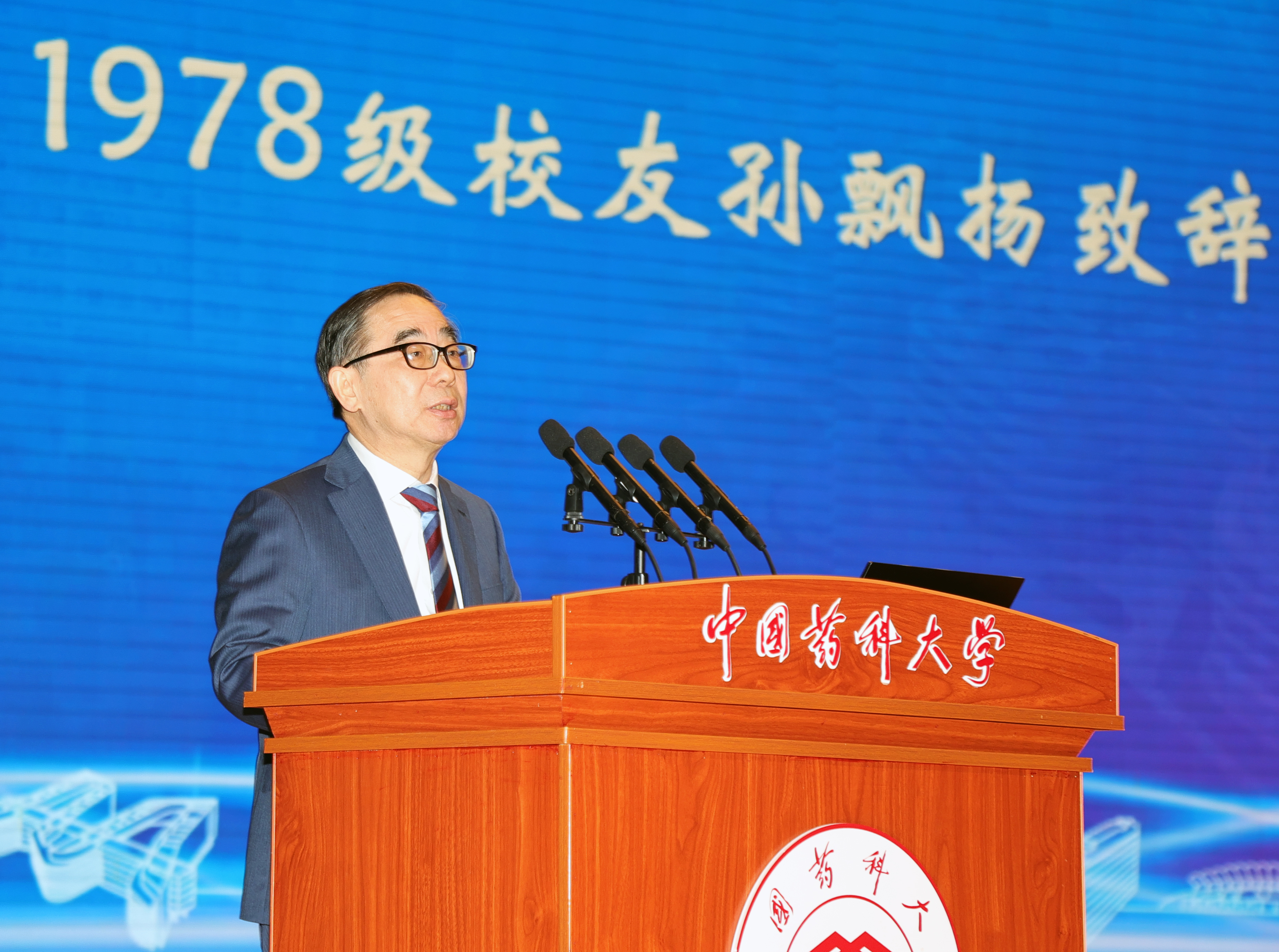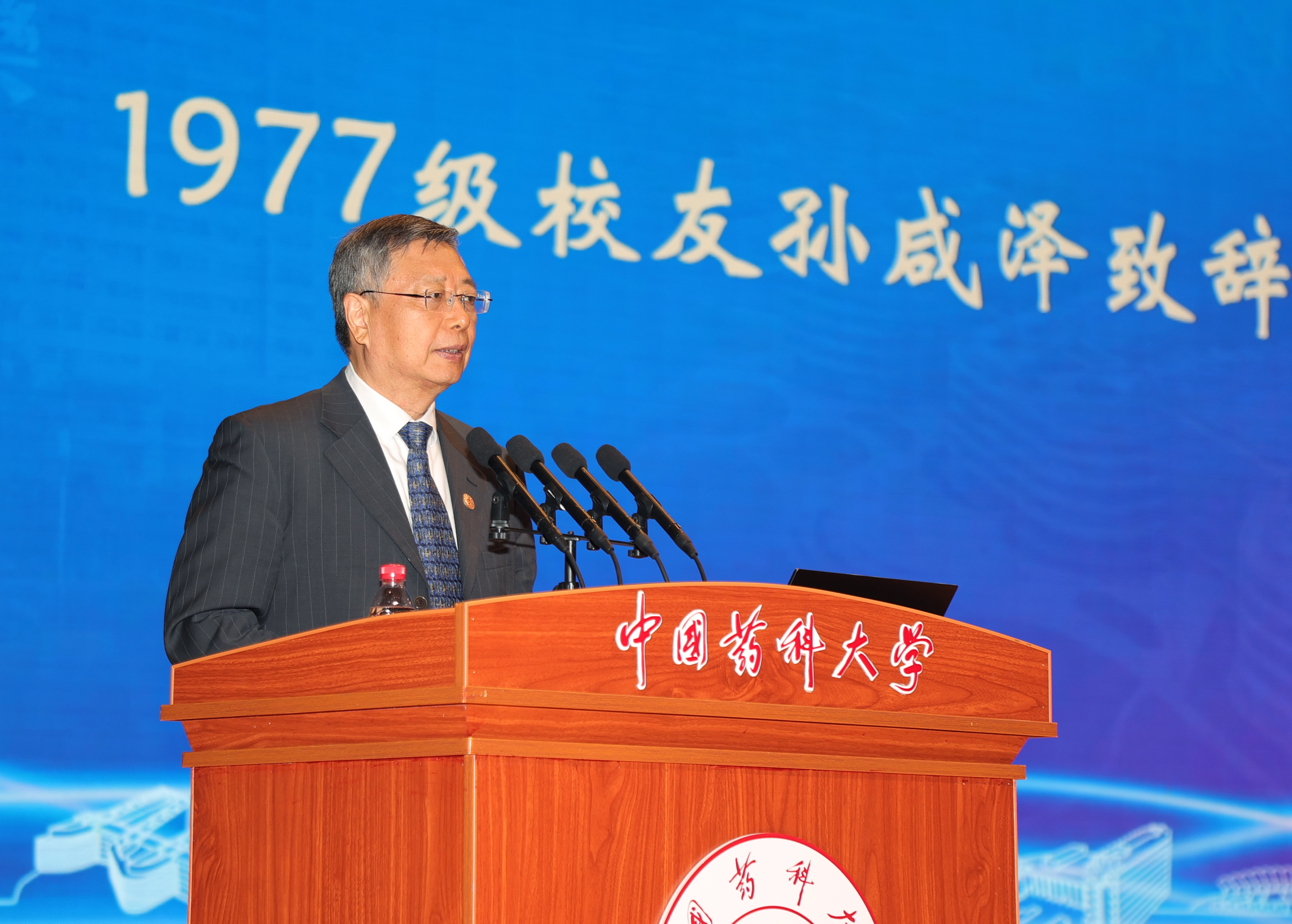 1977级校友、第十三届全国政协教科卫体委员会副主任、国家食品药品监督管理总局原副局长、中国药学会理事长孙咸泽致辞