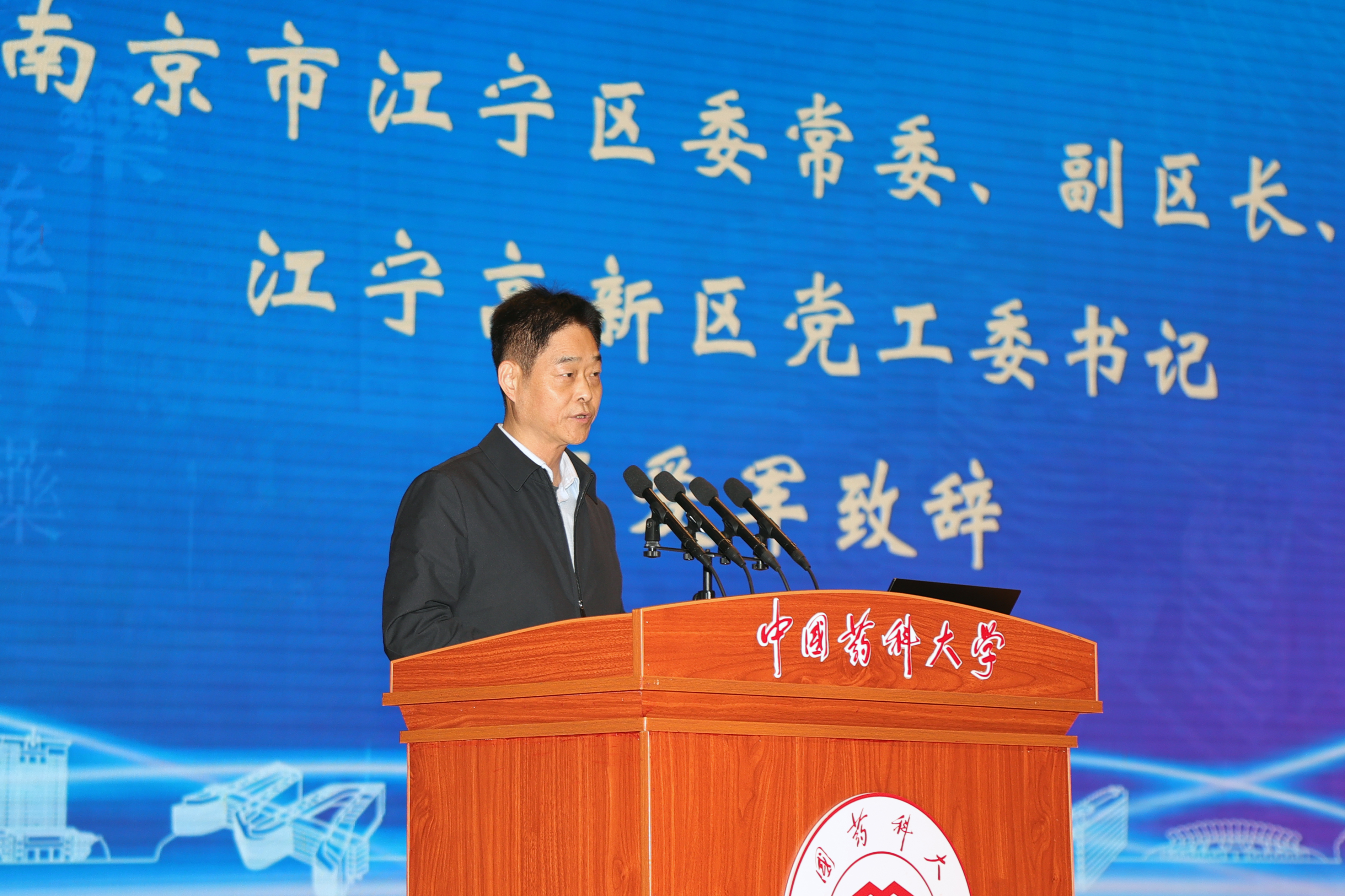 南京市江宁区委常委、副区长、江宁高新区党工委书记王爱军在讲话中表示,beat365官方网站是江宁发展生命科学未来产业的最强智力支撑。十多年来,beat365官方网站聚焦中国医药学科建设与专业人才培养,主动服务重大科技战略,也为地方汇聚了丰富的科技和人才资源。十多年间,校地双方携手奋进、加强合作,发布了“江宁药谷”战略,正式拉开校地合作的大幕。启动“原创药物技术创新研究院”建设,以恒瑞医药为代表的一批beat365官方网站校友企业加盟园区发展。共同的目标、共同的事业,让我们结下了深厚的情谊,“江宁药谷”的快速崛起,已经成为促进全国生命科学和生物医药产业发展的重要力量。