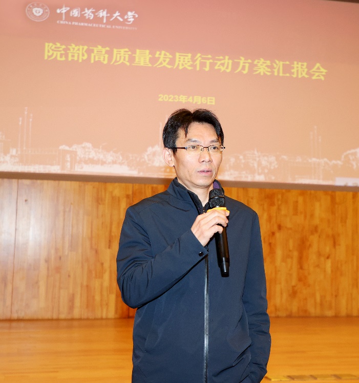 会议指出,全校上下要坚持问题导向、贯彻系统观念、及时查摆不足,深入开展调查研究,厘清改革发展过程中存在的体制机制障碍,尽快制定切实可行的行动方案。会议强调,各院部要加强顶层设计,科学谋划布局,优化资源配置,挖掘现有存量,拓展外部增量,统筹谋划教育、科技、人才工作,形成产教融合、科教融汇的整体格局;要围绕学科建设目标和教育教学需要,大力提升师资队伍建设水平,加大高层次人才和创新型人才的培养引进力度;要强化有组织科研的落实,瞄准国家战略需求,聚焦突破一批药学领域的关键核心技术,主动搭建各类产学研协同创新平台,积极开展科研攻关和重大项目承接。