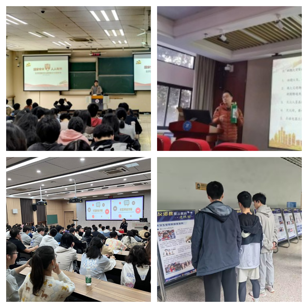 学生工作处印发《关于组织开展2023年全民国家安全教育日宣传教育活动的通知》,组织开展“树立安全意识、关心国家安全”主题班会,观看“千万师生同上一堂国家安全教育课”,学习国家安全法律法规。引导学生关注“中国反邪教”微信公众号,发起“微博#国家安全日#话题”互动,开展漫说“国家安全”、海报征集等活动,形成“国家安全,人人有责”宣传教育的良好氛围。