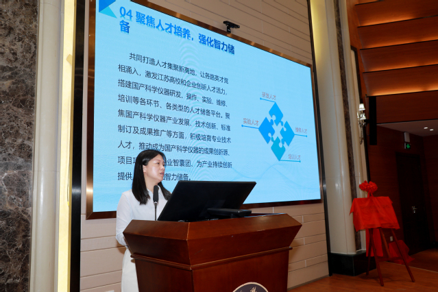 省科技资源统筹服务中心副主任孙兴莲宣读成立国产仪器产业联盟倡议