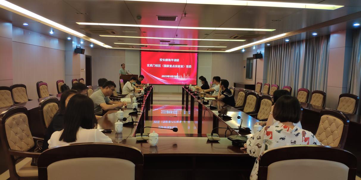 为推动学习贯彻习近平新时代中国特色社会主义思想主题教育走深走实,将调查研究工作贯穿主题教育全过程,5月29日下午,校长郝海平赴玄武门校区(国家重点实验室)党委开展专题调研,并在学术交流中心205会议室召开调研座谈会。校长助理、玄武门校区(国家重点实验室)党委书记邬瑞斌,药物科学研究院、继续教育学院、现代制药产业学院领导和教师代表参加了会议。