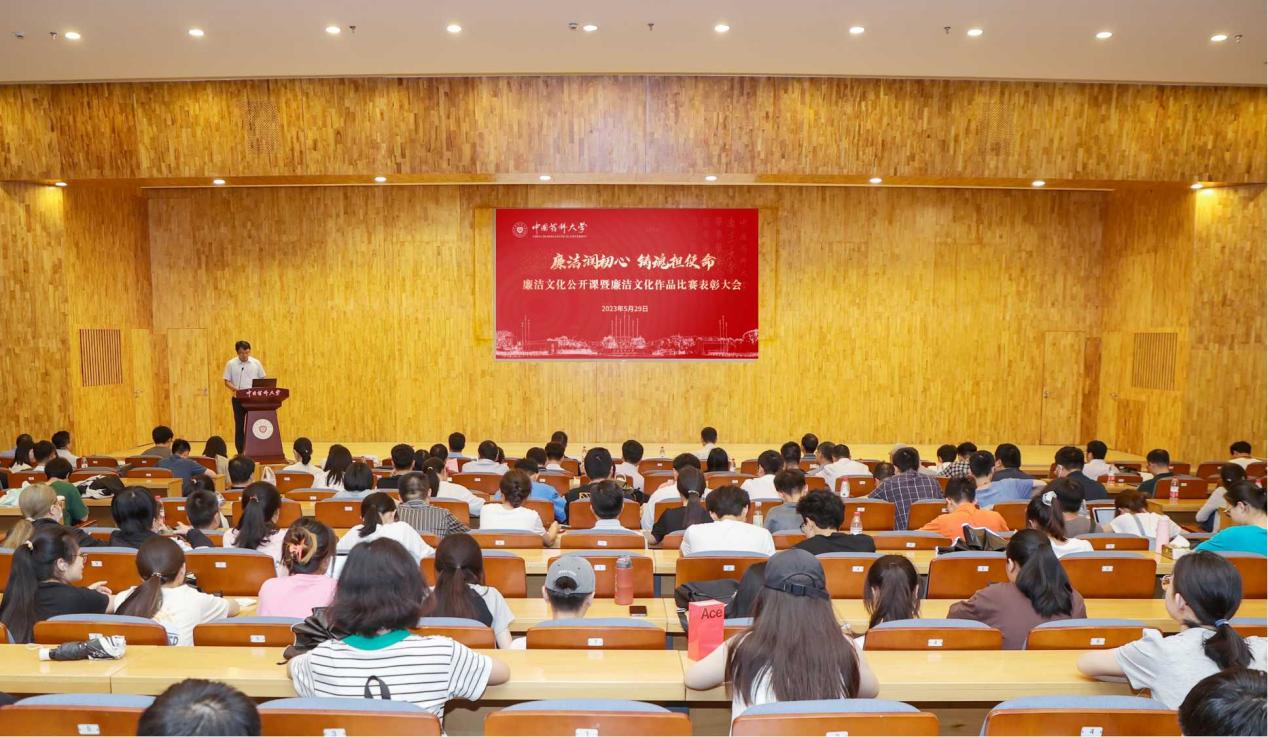 为深入学习贯彻党的二十大精神,推动主题教育走深走实,贯彻落实新时代加强廉洁文化建设的部署要求,引导广大师生积极参与廉洁校园文化建设,营造良好的育人环境,5月29日,校纪委办公室、团委、生命科学与技术学院在江宁校区举办“廉洁润初心,铸魂担使命”——廉洁文化公开课暨廉洁文化作品比赛表彰大会。校党委副书记、纪委书记戴建君出席活动并讲专题党课,机关及相关学院处级领导干部、纪检监察干部、二级党组织纪检委员和机关党支部纪检委员、学院团委书记、辅导员及师生代表等近300人参加活动。活动由校团委书记张杨彬主持。