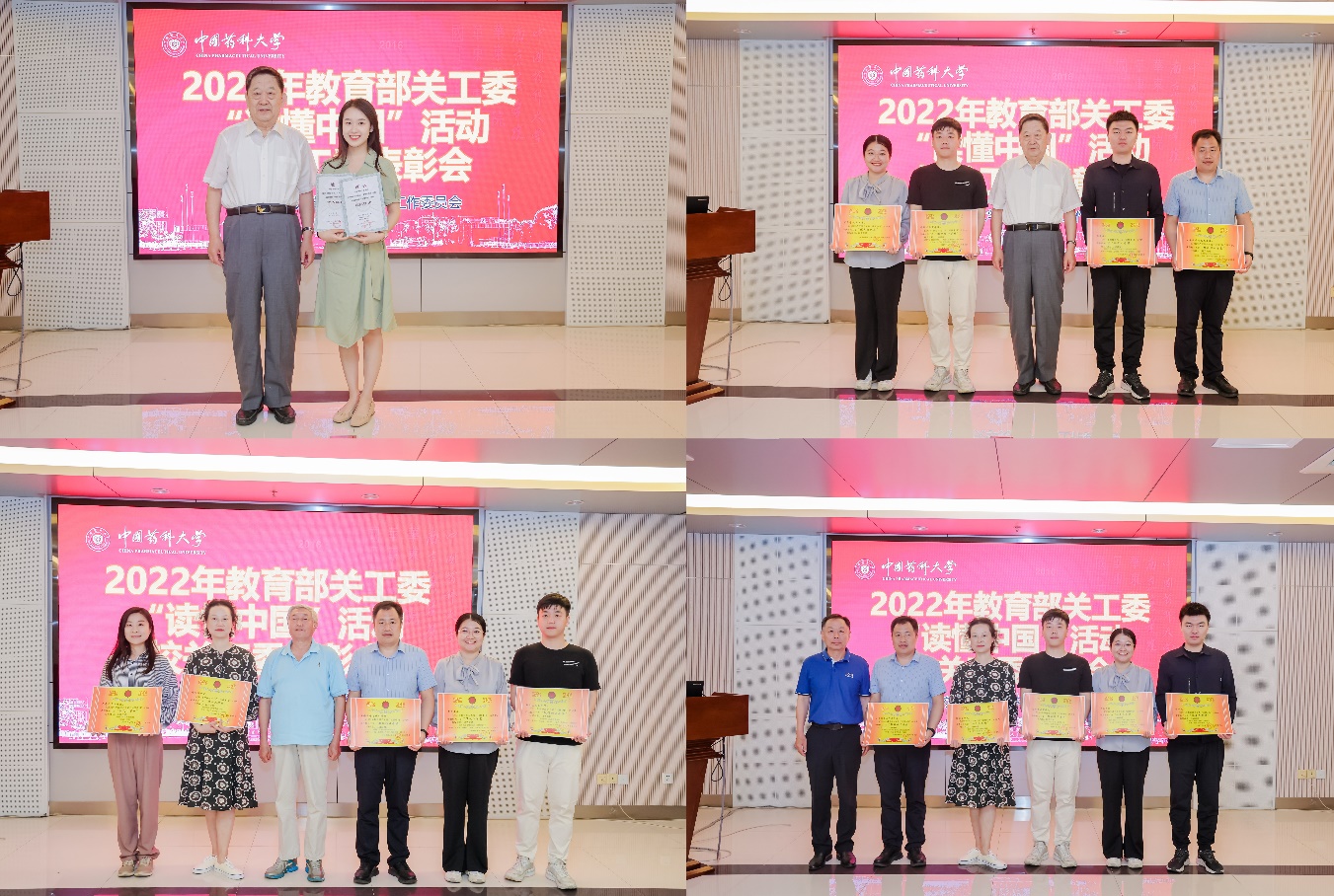 关工委秘书长祝鸿宣读了校关工委2022年“读懂中国”活动的表彰决定,校关工委领导为获奖的二级关工委颁奖,其中中药学院获得了“读懂中国”活动校优秀组织奖。中药学院辅导员丁祎铭作为获奖代表作了交流发言。由她指导的学生作品《兴药为民传佳话,厚朴远志福万家》《披肝沥胆创新药,精业济群嘱后生》分别获得教育部关工委“读懂中国”活动最佳征文奖和优秀征文奖。