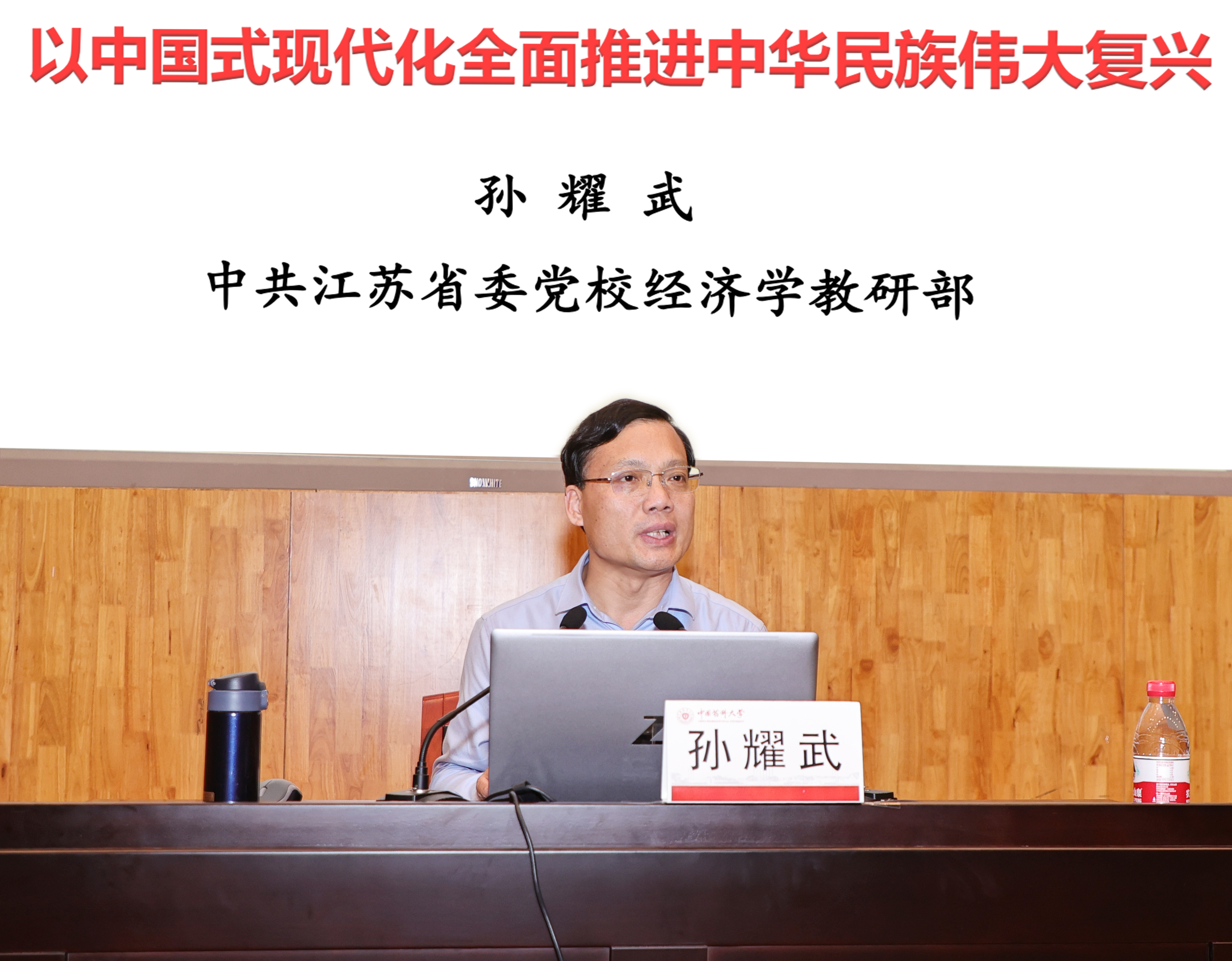 会上,孙耀武教授作《以中国式现代化全面推进中华民族伟大复兴》的专题报告。他以“实现中华民族伟大复兴是中国现代化的奋斗目标 ”为引题,从“现代化的内涵与中国式现代化的特征”“现代化百年追求与中国式现代化 ”“开创中国式现代化的总体部署与推进重点”等方面对中国式现代化这一创新理论进行了全面、深入的解读。