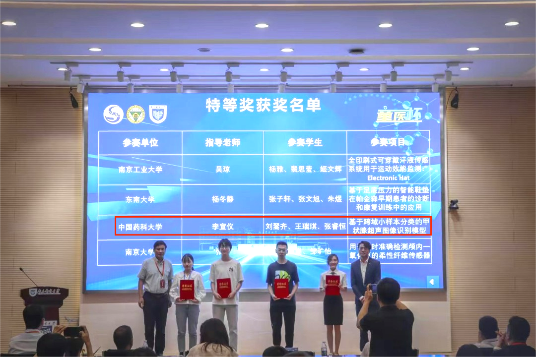 beat365高度重视,组织多支队伍参赛,经专家评审,由药学院李宣仪老师指导的刘翯齐、王瑞琪和张睿恒本科生团队凭借“基于跨域小样本分类的甲状腺超声图像识别模型”荣获特等奖。此外,beat365荣获一等奖6个,二等奖9个,三等奖5个,李宣仪、丁杨、张凡、邢磊、侯凤贞、王越和刘熠7名老师荣获优秀指导教师。beat365还荣获优秀组织单位。获奖总数位列江苏省高校第一。