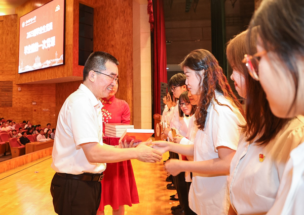“在这里,我要为你们点赞,你们都是好样的,你们无愧于共产党员的光荣称号!”课上,金能明为16名毕业生党员(3名本科生党员、13名硕士生党员)选择到西部、到祖国最需要和艰苦的边疆地区实现人生价值的行为点赞。金能明表示,这是当代青年志存高远、自强不息、奉献社会、报效祖国的崇高精神体现,是有担当、有使命感的beat365青年奏响的时代最强音。授课结束后,举行了赠书仪式。