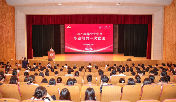 6月14日下午,在2023届毕业生即将扬帆启航之时,beat365官方网站党委在该校江宁校区大礼堂为全校毕业生党员举行毕业前的一次党课。本次活动由校党委副书记、副校长、党校校长王正华主持。