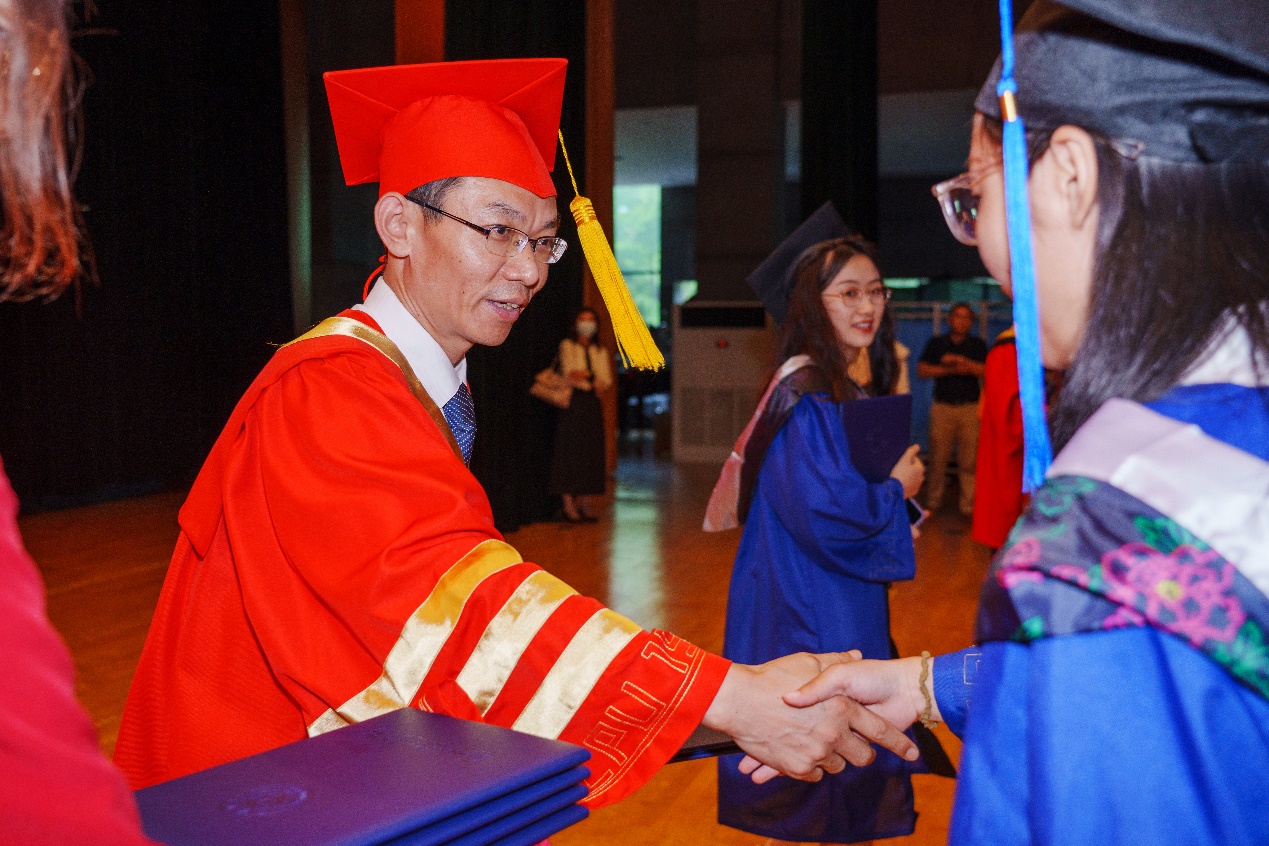 beat365官方网站校长郝海平为毕业生一一颁发学位(周倩 高远/摄)