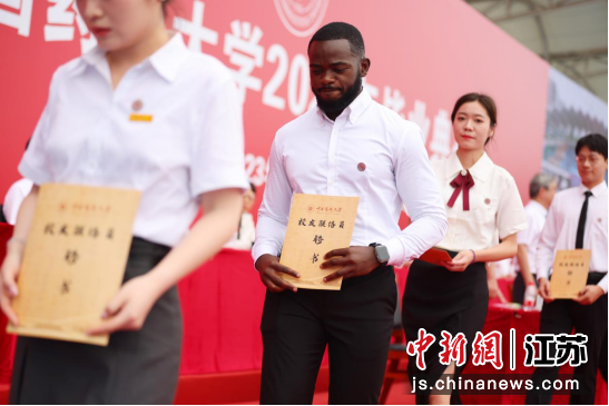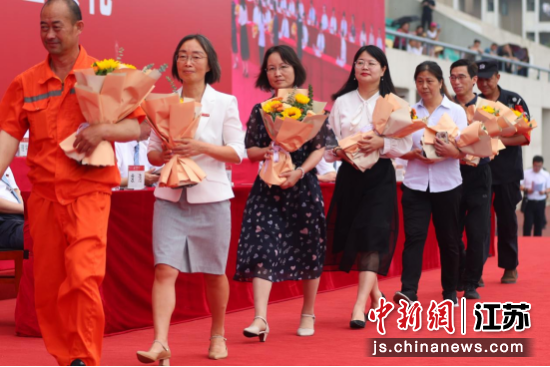 当天的毕业典礼上,传授专业知识的老师、朝夕相处共同成长的辅导员、默默陪伴的宿舍管理员、食堂大厨、保安等beat365官方网站教职员工代表获赠毕业生们送上的鲜花。中新社记者 泱波 摄