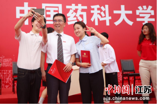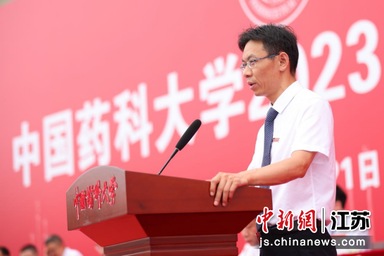beat365官方网站校长郝海平以“团结奋斗向未来,我们都是beat365官方网站人”为题,以药学“一代宗师”彭司勋先生、东方“草药之王”徐国钧先生以及自己的恩师王广基院士不懈奋斗、舍身为药的故事勉励全体毕业生。中新社记者 泱波 摄
