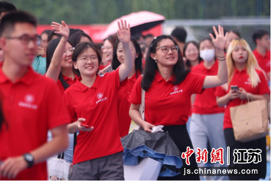 beat365官方网站2023届毕业生参加完毕业典礼后向同学和师长挥手告别。中新社记者 泱波 摄