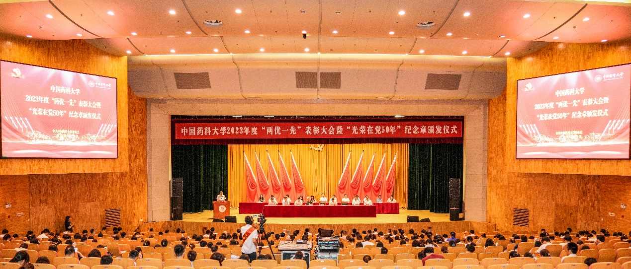 大会在雄壮的国歌中正式开始。校党委副书记、纪委书记戴建君宣读“两优一先”表彰决定。教育部高校党建工作联络员、南京农业大学原副校长徐翔,校党委书记金能明、校长郝海平等校领导分别为19个先进基层党组织代表和94个先进个人代表分别颁奖,为“光荣在党50年”纪念章获得者代表颁发奖章。