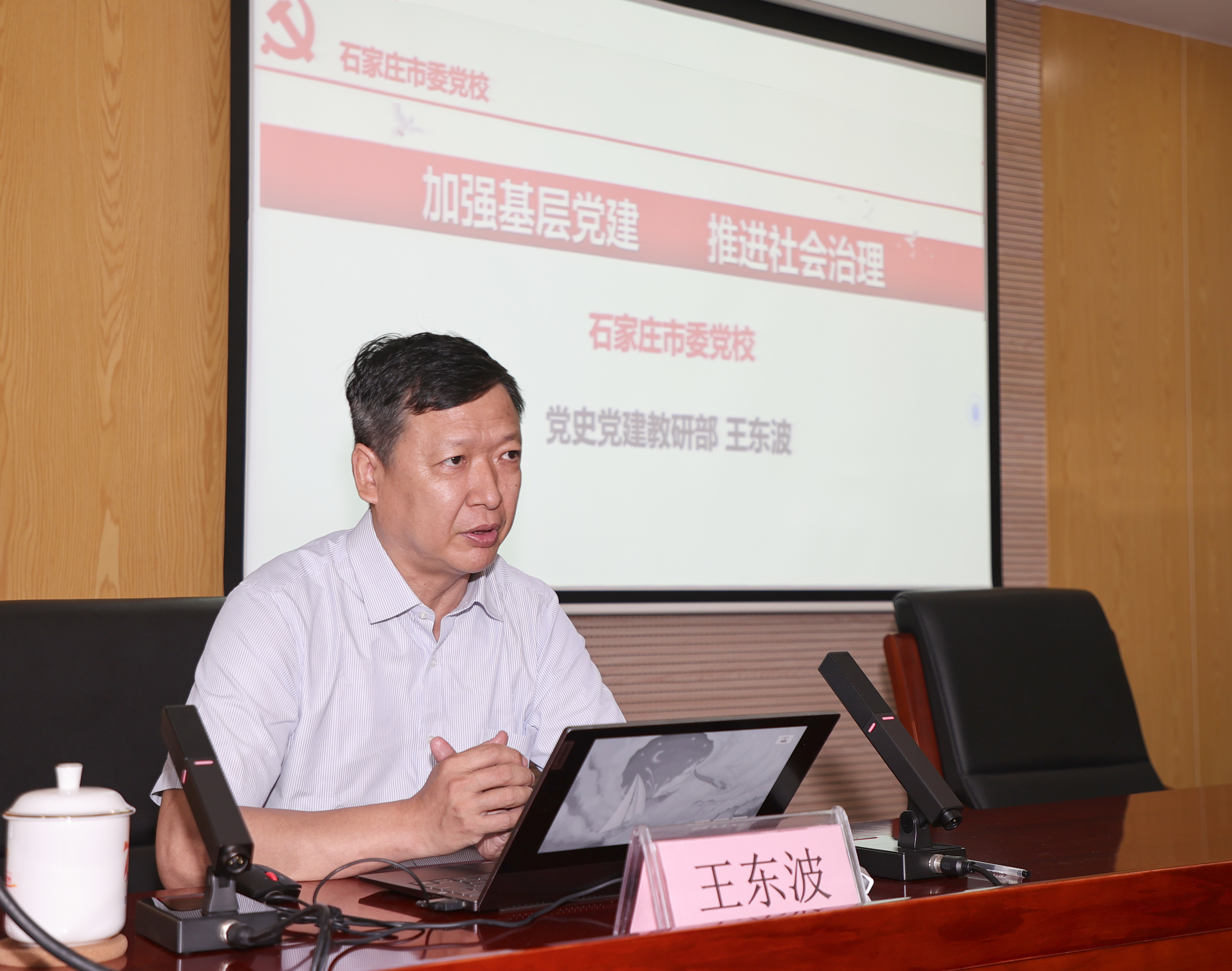 本次报告会分别邀请两位专家作专题辅导。石家庄市委党校教授、党史党建部主任王东波作《加强基层党建,扎实推进基层社会治理》的辅导报告。他从“充分认识加强基层党建的重要性”“全面把握加强基层党建的主要内容”“贯彻落实全面推进基层党建”三个方面深入展开论述。河北正定县委党校副校长(正定干部学院副院长)张书昕以《知之深 爱之切——习近平在正定的难忘岁月》为题给大家上了一堂生动的专题辅导课。她从经济篇、文化篇、党建篇三方面详细介绍了习近平同志在正定工作期间的奋斗轨迹,生动彰显了习近平总书记的为民情怀、改革精神、战略眼光和实干作风。