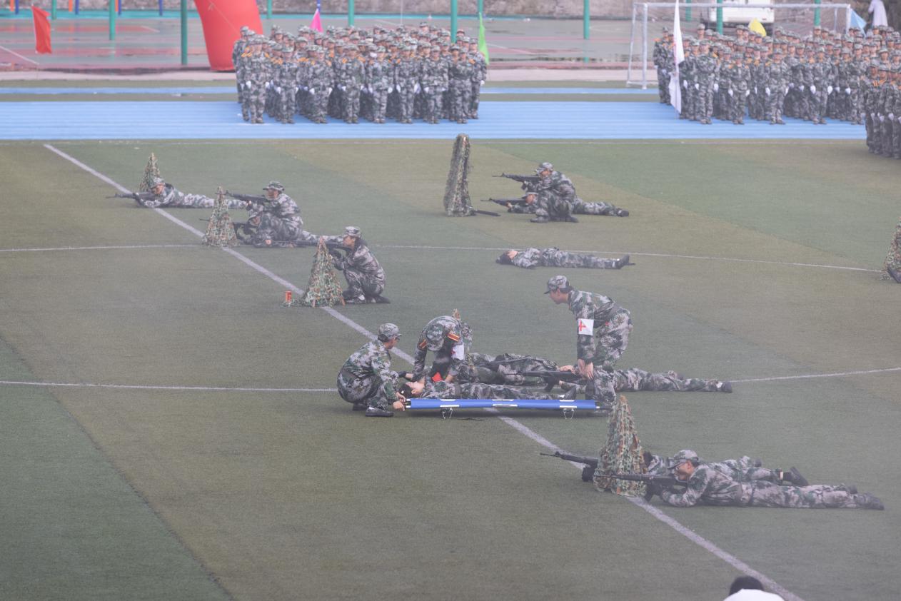 展演中,伴随着激昂雄壮的分列式进行曲,各队列方阵步伐铿锵、整齐有力、志气激昂,展现了中国beat365学子积极向上的精神面貌。分列式后,各方阵迅速就位,依次展演刺杀操、匕首操、格斗、战术、战场救护等,扎实过硬的技能展示,赢得了全场热烈掌声。