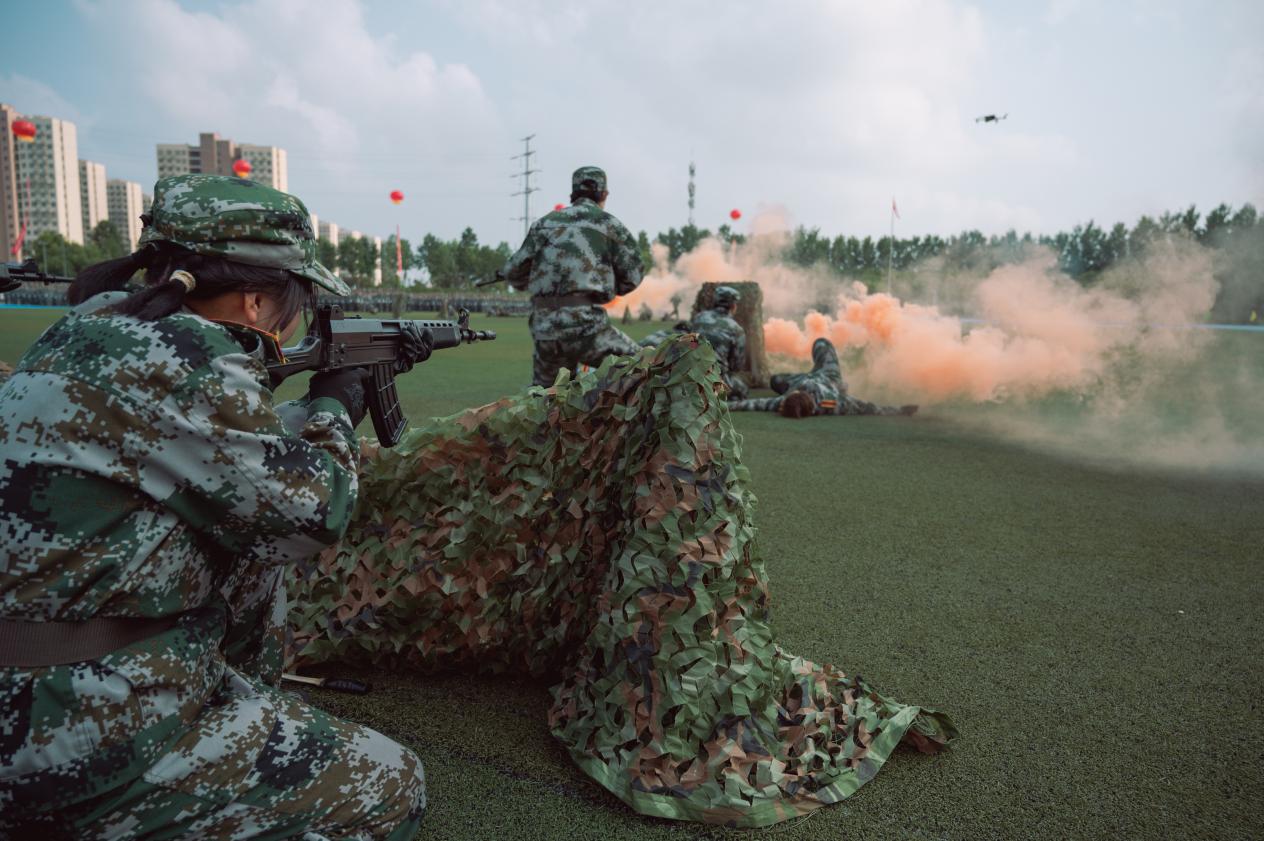 今年军训,除开展军训队列科目外,还组织了“反诈防骗进军训”“急救培训进军训”“消防演练进军训”“国防教育进军训”等活动。