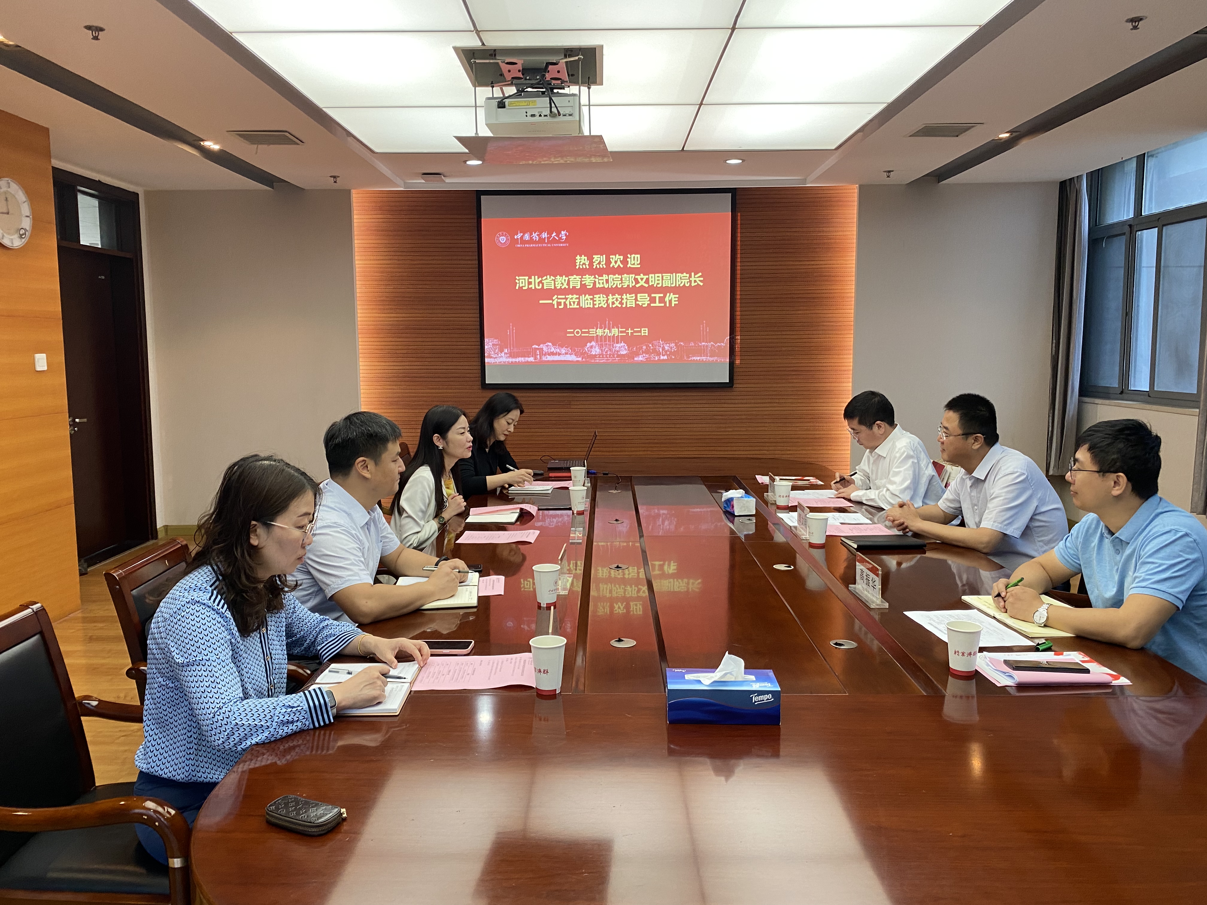 9月22日上午,河北省教育考试院副院长郭文明一行来beat365调研交流。校党委副书记、副校长王正华出席座谈会,招生就业处、河北招生宣传组相关负责人参加座谈。