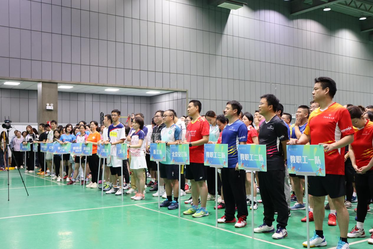 随后,校友会常务副会长陆涛和各参赛队领队共同为校友羽毛球协会揭牌。北京安汀队队长、beat3652018级校友周帅作为校友代表向学校赠送球衣,上海校友会羽毛球队队长文霞代表参赛校友致辞。校友会常务副会长陆涛宣布比赛开始。